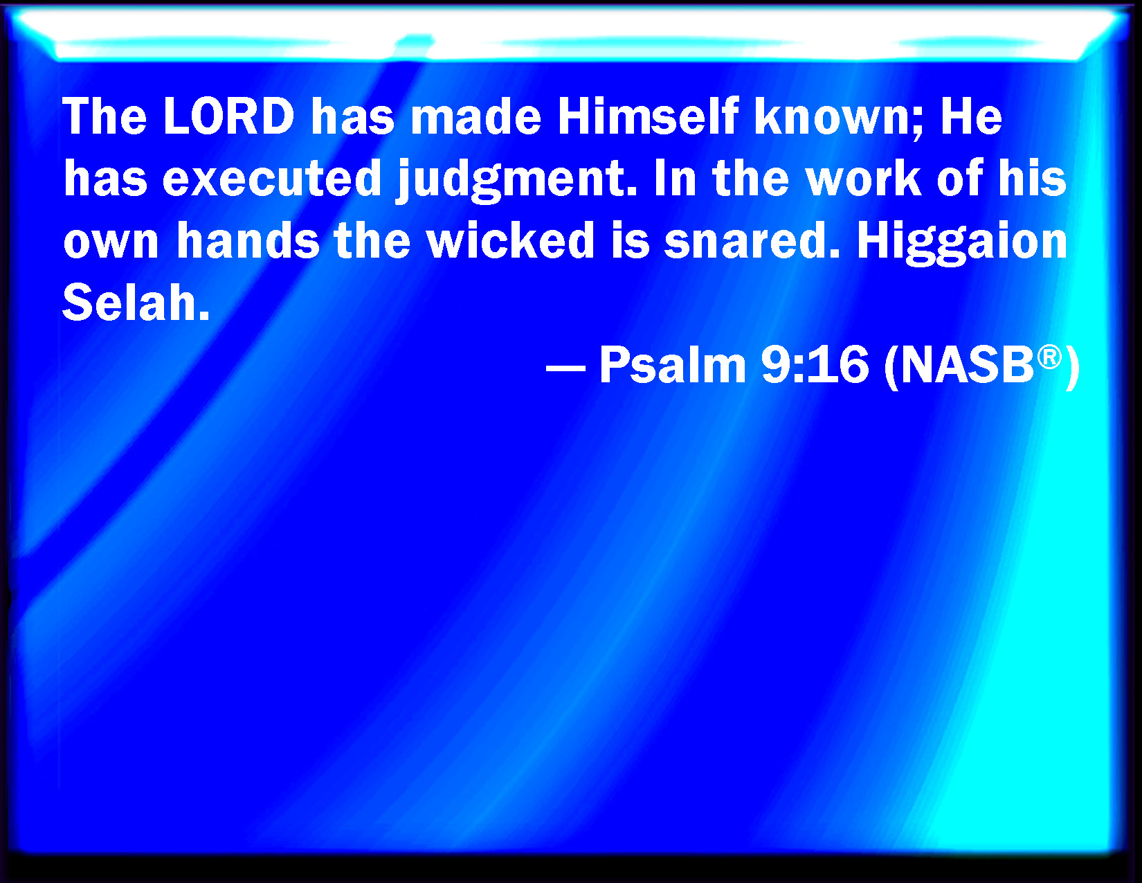 Psalm 9:16 The LORD is known by the judgment which he executes: the wicked is snared in the work of his own hands. Higgaion. Selah.