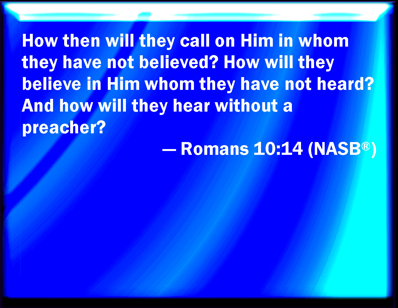 How then shall they call on him, in whom they have not believed? Or how shall they believe him, of whom they have not heard? And how shall they hear, without a preacher?
