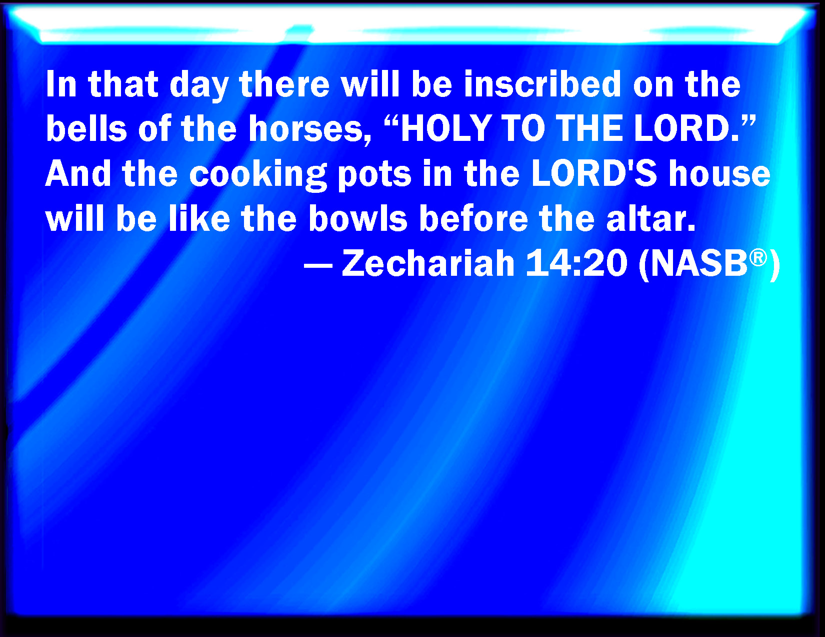 Zechariah 14:20 In that day shall there be on the bells of the horses, HOLINESS UNTO THE LORD; and the pots in the LORD's house shall be like the bowls before the altar.