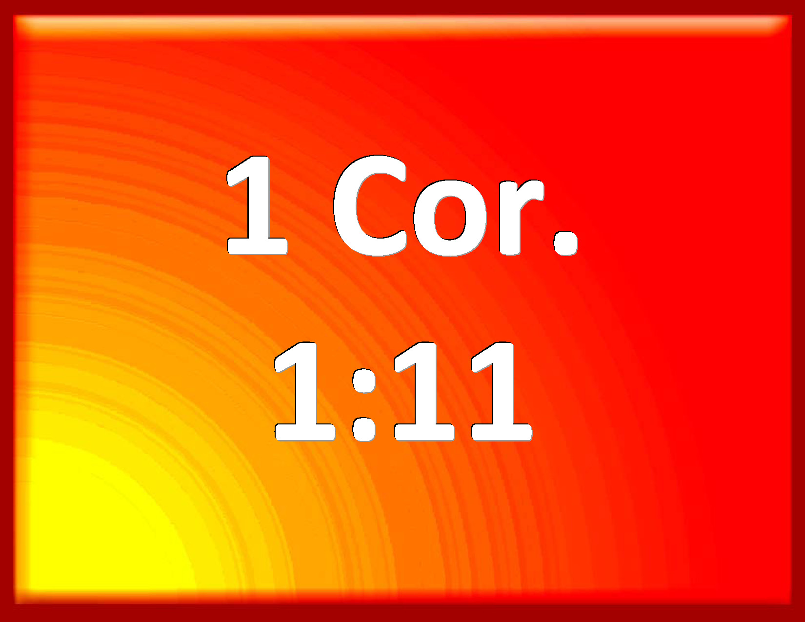 Bible Verse Slide 1 Corinthians 1:11 For it has been declared to me of you, my brothers, by them which are of the house of Chloe, that there are contentions among you. KJV: For it hath been declared unto me of you, my brethren, by them which are of the house of Chloe, that there are contentions among you. DRB: For it hath been signified unto me, my brethren, of you, by them that are of the house of Chloe, that there are contentions among you. DBT: For it has been shewn to me concerning you, my brethren, by those of the house of Chloe, that there are strifes among you. ERV: For it hath been signified unto me concerning you, my brethren, by them which are of the household of Chloe, that there are contentions among you. WBT: For it hath been declared to me concerning you, my brethren, by them who are of the house of Chloe, that there are contentions among you. WEB: For it has been reported to me concerning you, my brothers, by those who are from Chloe's household, that there are contentions among you. YLT: for it was signified to me concerning you, my brethren, by those of Chloe, that contentions are among you;Links 1 Corinthians 1:11 NIV • 1 Corinthians 1:11 NLT • 1 Corinthians 1:11 ESV • 1 Corinthians 1:11 NASB • 1 Corinthians 1:11 KJV • 1 Corinthians 1:11 Interlinear • 1 Corinthians 1:11 Commentaries • 1 Corinthians 1:11 Parallel Texts • 1 Corinthians 1:11 Bible Apps • 1 Corinthians 1:11 Parallel • Bible Hub |