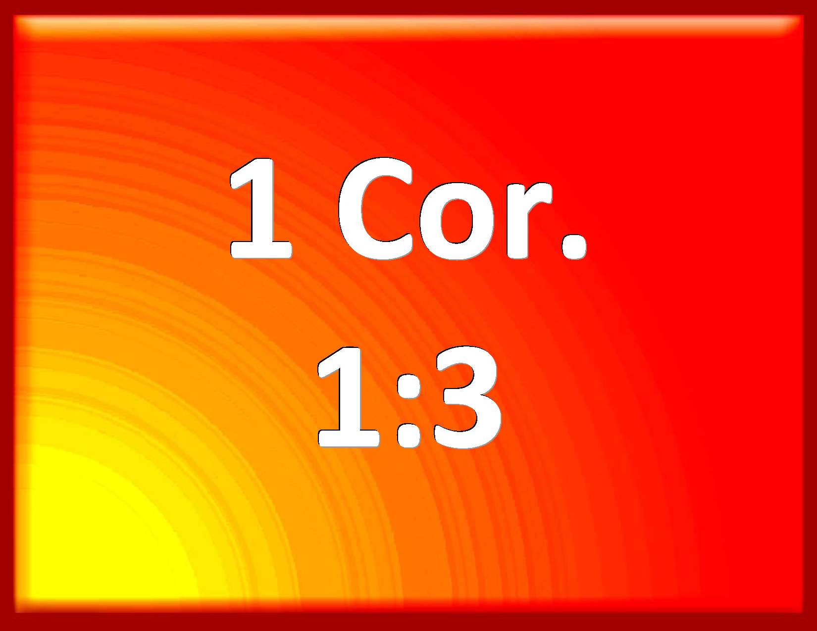 Bible Verse Slide 1 Corinthians 1:3 Grace be to you, and peace, from God our Father, and from the Lord Jesus Christ. KJV: Grace be unto you, and peace, from God our Father, and from the Lord Jesus Christ. DRB: Grace to you, and peace from God our Father, and from the Lord Jesus Christ. DBT: Grace to you and peace from God our Father, and the Lord Jesus Christ. ERV: Grace to you and peace from God our Father and the Lord Jesus Christ. WBT: Grace be to you, and peace from God our Father, and from the Lord Jesus Christ. WEB: Grace to you and peace from God our Father and the Lord Jesus Christ. YLT: Grace to you and peace from God our Father and the Lord Jesus Christ!Links 1 Corinthians 1:3 NIV • 1 Corinthians 1:3 NLT • 1 Corinthians 1:3 ESV • 1 Corinthians 1:3 NASB • 1 Corinthians 1:3 KJV • 1 Corinthians 1:3 Interlinear • 1 Corinthians 1:3 Commentaries • 1 Corinthians 1:3 Parallel Texts • 1 Corinthians 1:3 Bible Apps • 1 Corinthians 1:3 Parallel • Bible Hub |