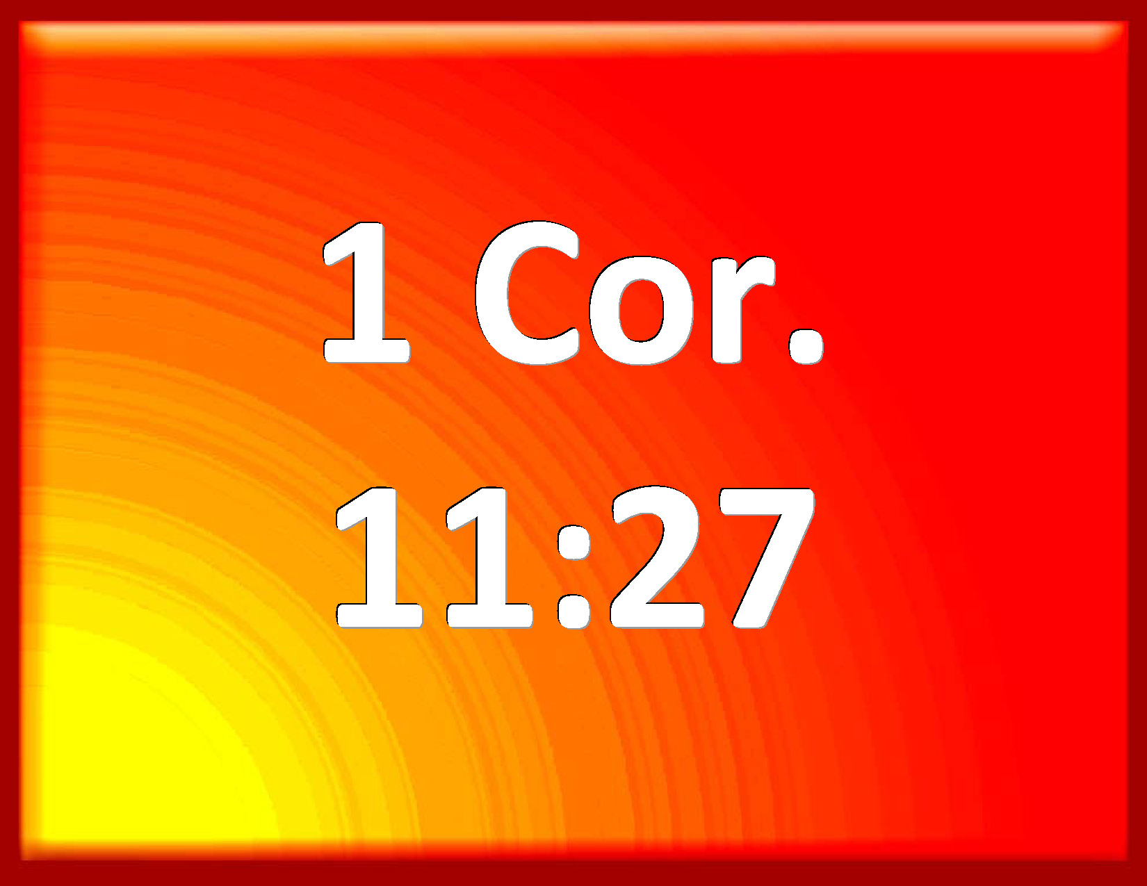 Bible Verse Slide 1 Corinthians 11:27 Why whoever shall eat this bread, and drink this cup of the Lord, unworthily, shall be guilty of the body and blood of the Lord. KJV: Wherefore whosoever shall eat this bread, and drink this cup of the Lord, unworthily, shall be guilty of the body and blood of the Lord. DRB: Therefore whosoever shall eat this bread, or drink the chalice of the Lord unworthily, shall be guilty of the body and of the blood of the Lord. DBT: So that whosoever shall eat the bread, or drink the cup of the Lord, unworthily, shall be guilty in respect of the body and of the blood of the Lord. ERV: Wherefore whosoever shall eat the bread or drink the cup of the Lord unworthily, shall be guilty of the body and the blood of the Lord. WBT: Wherefore, whoever shall eat this bread, and drink this cup of the Lord unworthily, shall be guilty of the body and blood of the Lord. WEB: Therefore whoever eats this bread or drinks the Lord's cup in a way unworthy of the Lord will be guilty of the body and the blood of the Lord. YLT: so that whoever may eat this bread or may drink the cup of the Lord unworthily, guilty he shall be of the body and blood of the Lord:Links 1 Corinthians 11:27 NIV • 1 Corinthians 11:27 NLT • 1 Corinthians 11:27 ESV • 1 Corinthians 11:27 NASB • 1 Corinthians 11:27 KJV • 1 Corinthians 11:27 Interlinear • 1 Corinthians 11:27 Commentaries • 1 Corinthians 11:27 Parallel Texts • 1 Corinthians 11:27 Bible Apps • 1 Corinthians 11:27 Parallel • Bible Hub |