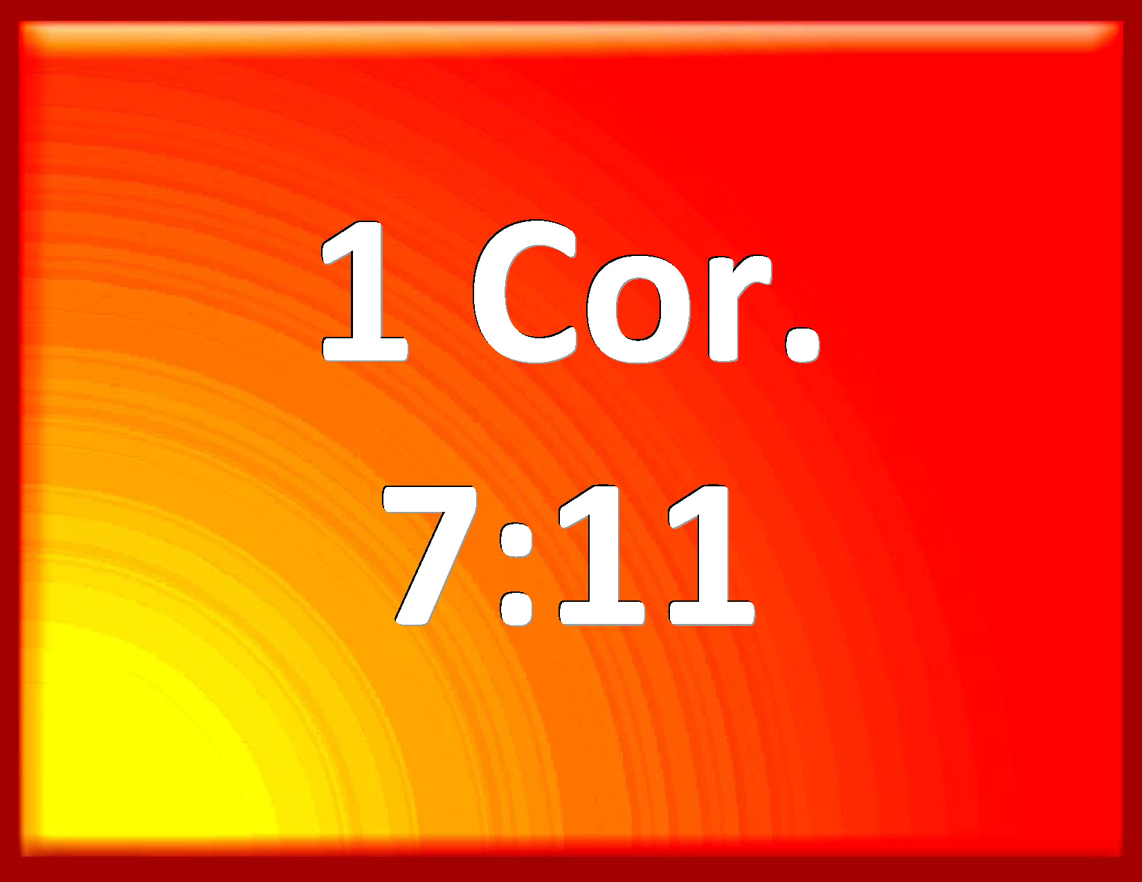 Bible Verse Slide 1 Corinthians 7:11 But and if she depart, let her remain unmarried or be reconciled to her husband: and let not the husband put away his wife. KJV: But and if she depart, let her remain unmarried, or be reconciled to her husband: and let not the husband put away his wife. DRB: And if she depart, that she remain unmarried, or be reconciled to her husband. And let not the husband put away his wife. DBT: (but if also she shall have been separated, let her remain unmarried, or be reconciled to her husband;) and let not husband leave wife. ERV: (but and if she depart, let her remain unmarried, or else be reconciled to her husband); and that the husband leave not his wife. WBT: But if she shall depart, let her remain unmarried, or be reconciled to her husband: and let not the husband put away his wife. WEB: (but if she departs, let her remain unmarried, or else be reconciled to her husband), and that the husband not leave his wife. YLT: but and if she may separate, let her remain unmarried, or to the husband let her be reconciled, and let not a husband send away a wife.Links 1 Corinthians 7:11 NIV • 1 Corinthians 7:11 NLT • 1 Corinthians 7:11 ESV • 1 Corinthians 7:11 NASB • 1 Corinthians 7:11 KJV • 1 Corinthians 7:11 Interlinear • 1 Corinthians 7:11 Commentaries • 1 Corinthians 7:11 Parallel Texts • 1 Corinthians 7:11 Bible Apps • 1 Corinthians 7:11 Parallel • Bible Hub |