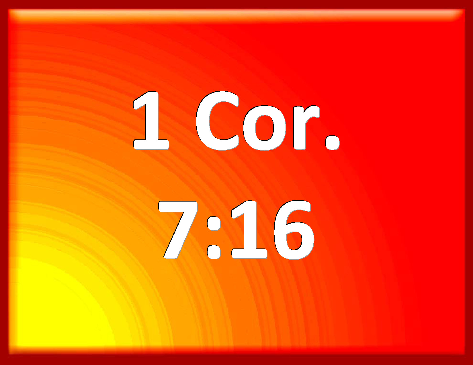 Bible Verse Slide 1 Corinthians 7:16 For what know you, O wife, whether you shall save your husband? or how know you, O man, whether you shall save your wife? KJV: For what knowest thou, O wife, whether thou shalt save thy husband? or how knowest thou, O man, whether thou shalt save thy wife? DRB: For how knowest thou, O wife, whether thou shalt save thy husband ? Or how knowest thou, O man, whether thou shalt save thy wife ? DBT: For what knowest thou, O wife, if thou shalt save thy husband? or what knowest thou, O husband, if thou shalt save thy wife? ERV: For how knowest thou, O wife, whether thou shalt save thy husband? or how knowest thou, O husband, whether thou shalt save thy wife? WBT: For how knowest thou, O wife, whether thou shalt save thy husband? or how knowest thou, O man, whether thou shalt save thy wife? WEB: For how do you know, wife, whether you will save your husband? Or how do you know, husband, whether you will save your wife? YLT: for what, hast thou known, O wife, whether the husband thou shalt save? or what, hast thou known, O husband, whether the wife thou shalt save?Links 1 Corinthians 7:16 NIV • 1 Corinthians 7:16 NLT • 1 Corinthians 7:16 ESV • 1 Corinthians 7:16 NASB • 1 Corinthians 7:16 KJV • 1 Corinthians 7:16 Interlinear • 1 Corinthians 7:16 Commentaries • 1 Corinthians 7:16 Parallel Texts • 1 Corinthians 7:16 Bible Apps • 1 Corinthians 7:16 Parallel • Bible Hub |