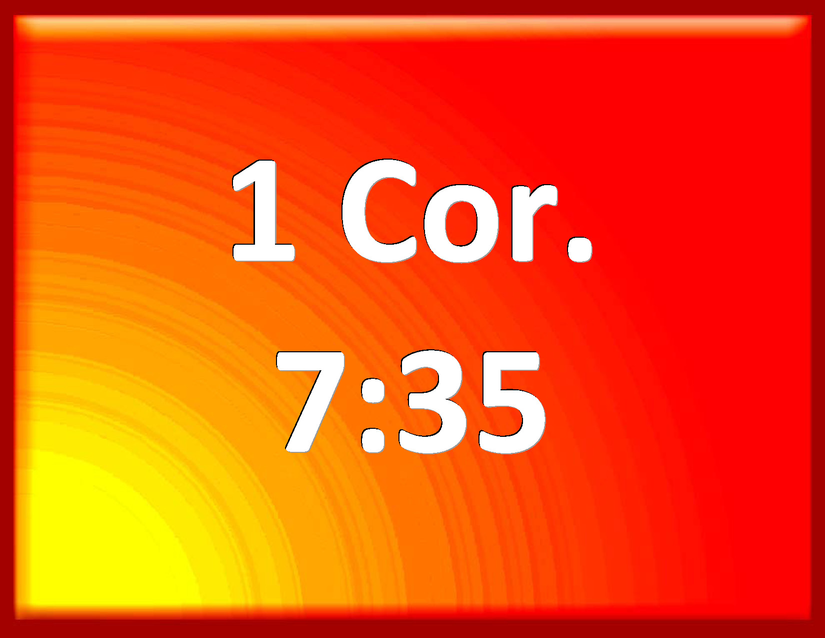 Bible Verse Slide 1 Corinthians 7:35 And this I speak for your own profit; not that I may cast a snare on you, but for that which is comely, and that you may attend on the Lord without distraction. KJV: And this I speak for your own profit; not that I may cast a snare upon you, but for that which is comely, and that ye may attend upon the Lord without distraction. DRB: And this I speak for your profit: not to cast a snare upon you; but for that which is decent, and which may give you power to attend upon the Lord, without impediment. DBT: But I say this for your own profit; not that I may set a snare before you, but for what is seemly, and waiting on the Lord without distraction. ERV: And this I say for your own profit; not that I may cast a snare upon you, but for that which is seemly, and that ye may attend upon the Lord without distraction. WBT: And this I speak for your own profit; not that I may cast a snare upon you, but for that which is comely, and that ye may attend upon the Lord without distraction. WEB: This I say for your own profit; not that I may ensnare you, but for that which is appropriate, and that you may attend to the Lord without distraction. YLT: And this for your own profit I say: not that I may cast a noose upon you, but for the seemliness and devotedness to the Lord, undistractedly,Links 1 Corinthians 7:35 NIV • 1 Corinthians 7:35 NLT • 1 Corinthians 7:35 ESV • 1 Corinthians 7:35 NASB • 1 Corinthians 7:35 KJV • 1 Corinthians 7:35 Interlinear • 1 Corinthians 7:35 Commentaries • 1 Corinthians 7:35 Parallel Texts • 1 Corinthians 7:35 Bible Apps • 1 Corinthians 7:35 Parallel • Bible Hub |