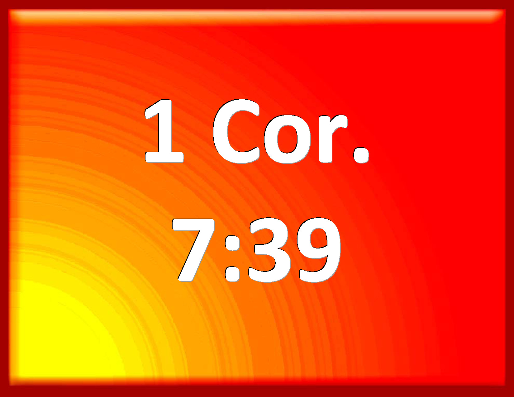 Bible Verse Slide 1 Corinthians 7:39 The wife is bound by the law as long as her husband lives; but if her husband be dead, she is at liberty to be married to whom she will; only in the Lord. KJV: The wife is bound by the law as long as her husband liveth; but if her husband be dead, she is at liberty to be married to whom she will; only in the Lord. DRB: A woman is bound by the law as long as her husband liveth; but if her husband die, she is at liberty: let her marry to whom she will; only in the Lord. DBT: A wife is bound for whatever time her husband lives; but if the husband be fallen asleep, she is free to be married to whom she will, only in the Lord. ERV: A wife is bound for so long time as her husband liveth; but if the husband be dead, she is free to be married to whom she will; only in the Lord. WBT: The wife is bound by the law as long as her husband liveth; but if her husband is dead, she is at liberty to be married to whom she will; only in the Lord. WEB: A wife is bound by law for as long as her husband lives; but if the husband is dead, she is free to be married to whoever she desires, only in the Lord. YLT: A wife hath been bound by law as long time as her husband may live, and if her husband may sleep, she is free to be married to whom she will — only in the Lord;Links 1 Corinthians 7:39 NIV • 1 Corinthians 7:39 NLT • 1 Corinthians 7:39 ESV • 1 Corinthians 7:39 NASB • 1 Corinthians 7:39 KJV • 1 Corinthians 7:39 Interlinear • 1 Corinthians 7:39 Commentaries • 1 Corinthians 7:39 Parallel Texts • 1 Corinthians 7:39 Bible Apps • 1 Corinthians 7:39 Parallel • Bible Hub |
