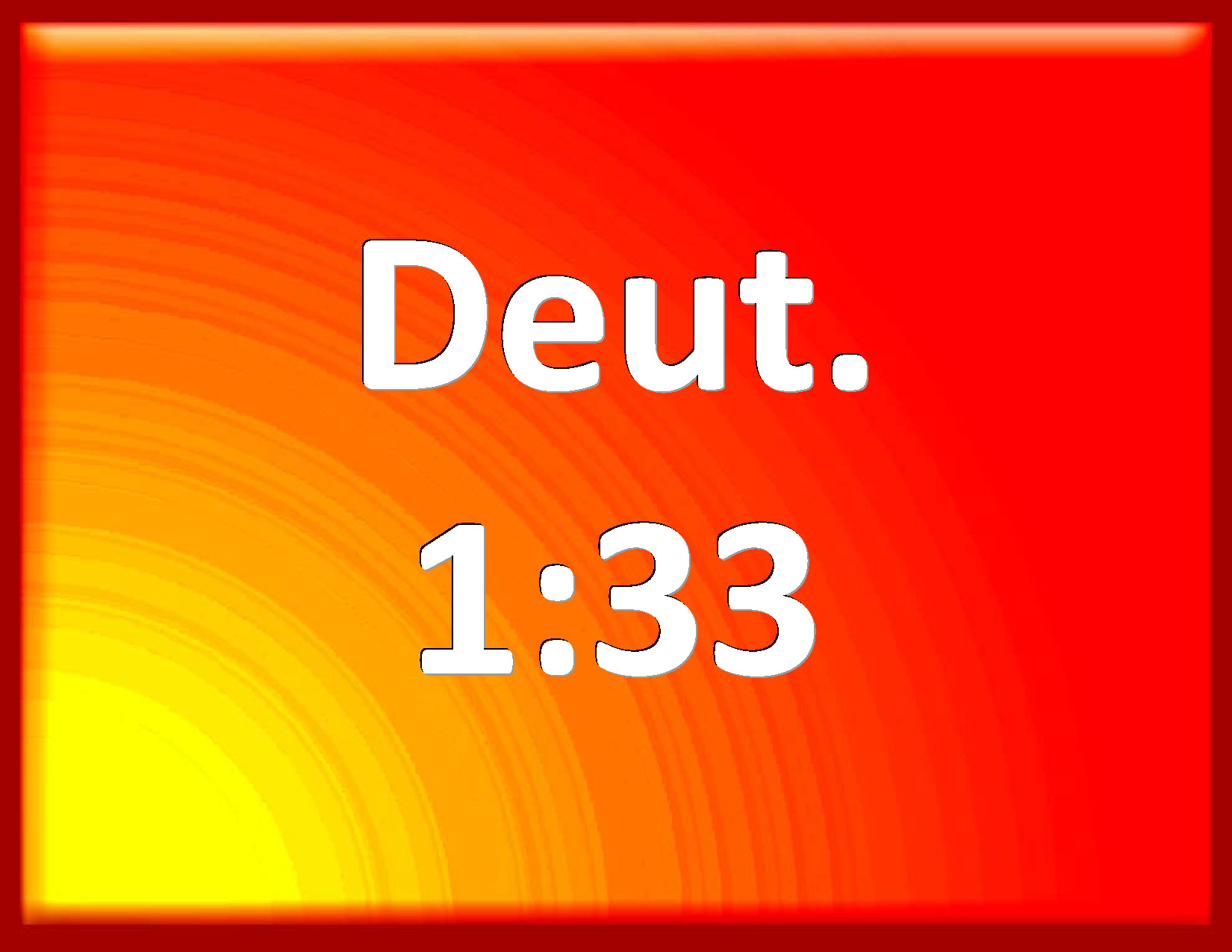 Bible Verse Slide Deuteronomy 1:33 Who went in the way before you, to search you out a place to pitch your tents in, in fire by night, to show you by what way you should go, and in a cloud by day. KJV: Who went in the way before you, to search you out a place to pitch your tents in, in fire by night, to shew you by what way ye should go, and in a cloud by day. DRB: Who went before you in the way, and marked out the place, wherein you should pitch your tents, in the night shewing you the way by fire, and in the day by the pillar of a cloud. DBT: who went in the way before you, to search you out a place for your encamping, in fire by night, to shew you by what way ye should go, and in the cloud by day. ERV: who went before you in the way, to seek you out a place to pitch your tents in, in fire by night, to shew you by what way ye should go, and in the cloud by day. WBT: Who went in the way before you, to search out for you a place to pitch your tents in, in fire by night, to show you by what way ye should go, and in a cloud by day. WEB: who went before you in the way, to seek you out a place to pitch your tents in, in fire by night, to show you by what way you should go, and in the cloud by day. YLT: who is going before you in the way to search out to you a place for your encamping, in fire by night, to shew you in the way in which ye go, and in a cloud by day.Links Deuteronomy 1:33 NIV • Deuteronomy 1:33 NLT • Deuteronomy 1:33 ESV • Deuteronomy 1:33 NASB • Deuteronomy 1:33 KJV • Deuteronomy 1:33 Interlinear • Deuteronomy 1:33 Commentaries • Deuteronomy 1:33 Parallel Texts • Deuteronomy 1:33 Bible Apps • Deuteronomy 1:33 Parallel • Bible Hub |