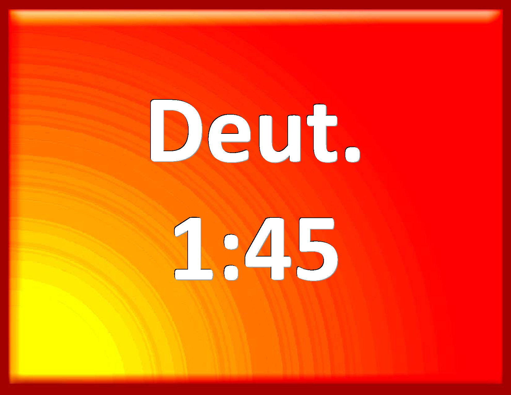 Bible Verse Slide Deuteronomy 1:45 And you returned and wept before the LORD; but the LORD would not listen to your voice, nor give ear to you. KJV: And ye returned and wept before the LORD; but the LORD would not hearken to your voice, nor give ear unto you. DRB: And when you returned and wept before the Lord, he heard you not, neither would he yield to ;your voice. DBT: And ye returned and wept before Jehovah, but Jehovah would not listen to your voice, nor give ear unto you. ERV: And ye returned and wept before the LORD; but the LORD hearkened not to your voice, nor gave ear unto you. WBT: And ye returned and wept before the LORD; but the LORD would not hearken to your voice, nor give ear to you. WEB: You returned and wept before Yahweh; but Yahweh didn't listen to your voice, nor gave ear to you. YLT: 'And ye turn back and weep before Jehovah, and Jehovah hath not hearkened to your voice, nor hath he given ear unto you;Links Deuteronomy 1:45 NIV • Deuteronomy 1:45 NLT • Deuteronomy 1:45 ESV • Deuteronomy 1:45 NASB • Deuteronomy 1:45 KJV • Deuteronomy 1:45 Interlinear • Deuteronomy 1:45 Commentaries • Deuteronomy 1:45 Parallel Texts • Deuteronomy 1:45 Bible Apps • Deuteronomy 1:45 Parallel • Bible Hub |