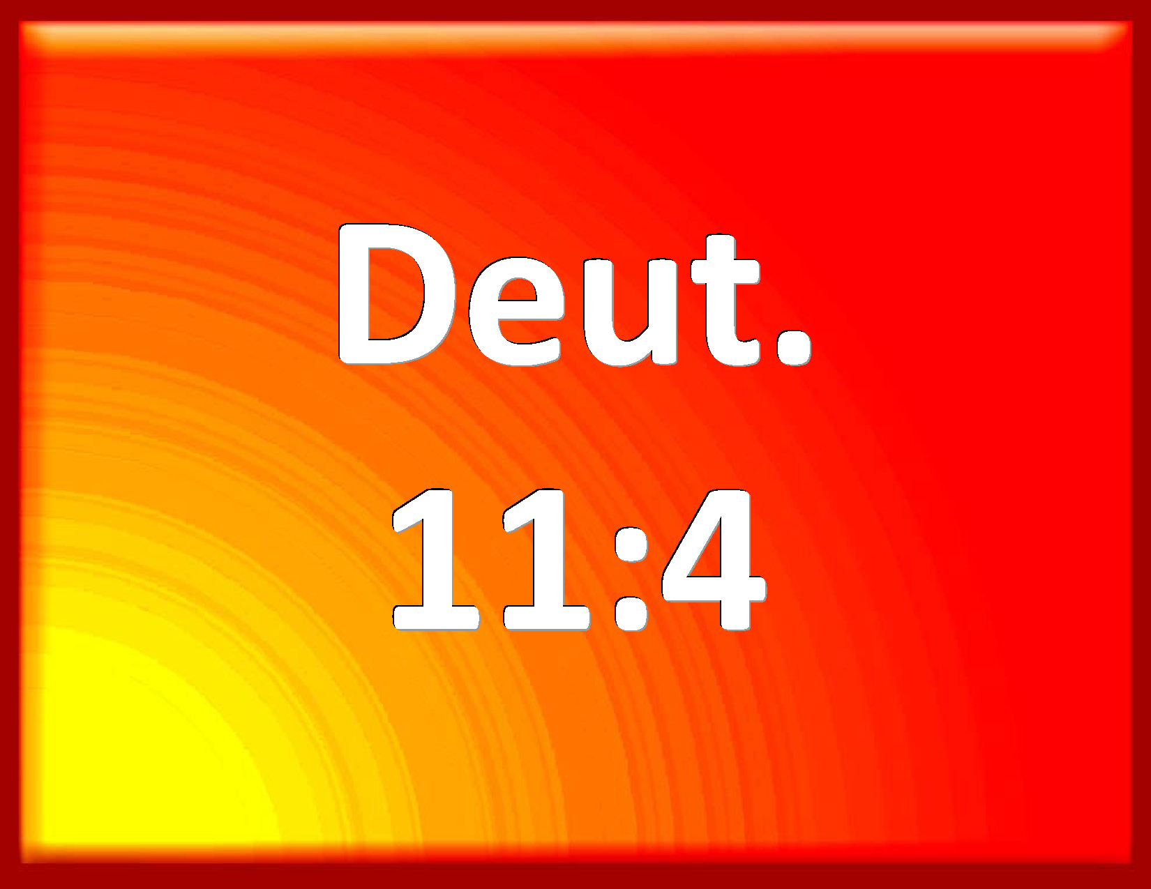 Bible Verse Slide Deuteronomy 11:4 And what he did to the army of Egypt, to their horses, and to their chariots; how he made the water of the Red sea to overflow them as they pursued after you, and how the LORD has destroyed them to this day; KJV: And what he did unto the army of Egypt, unto their horses, and to their chariots; how he made the water of the Red sea to overflow them as they pursued after you, and how the LORD hath destroyed them unto this day; DRB: And to all the host of the Egyptians, and to their horses and chariots: how the waters of the Red Sea covered them, when they pursued you, and how the Lord destroyed them until this present day: DBT: and what he did unto the army of Egypt, unto their horses, and unto their chariots, over which he made the water of the Red sea flow as they pursued after you, and Jehovah destroyed them unto this day; ERV: and what he did unto the army of Egypt, unto their horses, and to their chariots; how he made the water of the Red Sea to overflow them as they pursued after you, and how the LORD hath destroyed them unto this day; WBT: And what he did to the army of Egypt, to their horses, and to their chariots; how he made the water of the Red sea to overflow them as they pursued after you, and how the LORD hath destroyed them to this day; WEB: and what he did to the army of Egypt, to their horses, and to their chariots; how he made the water of the Red Sea to overflow them as they pursued after you, and how Yahweh has destroyed them to this day; YLT: and that which He hath done to the force of Egypt, to its horses, and to its chariot, when He hath caused the waters of the Red Sea to flow against their faces in their pursuing after them, and Jehovah destroyeth them, unto this day;Links Deuteronomy 11:4 NIV • Deuteronomy 11:4 NLT • Deuteronomy 11:4 ESV • Deuteronomy 11:4 NASB • Deuteronomy 11:4 KJV • Deuteronomy 11:4 Interlinear • Deuteronomy 11:4 Commentaries • Deuteronomy 11:4 Parallel Texts • Deuteronomy 11:4 Bible Apps • Deuteronomy 11:4 Parallel • Bible Hub |