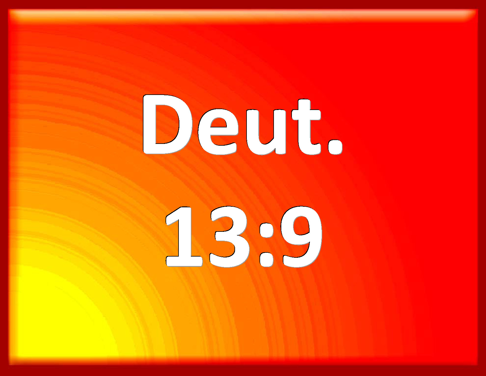 Bible Verse Slide Deuteronomy 13:9 But you shall surely kill him; your hand shall be first on him to put him to death, and afterwards the hand of all the people. KJV: But thou shalt surely kill him; thine hand shall be first upon him to put him to death, and afterwards the hand of all the people. DRB: But thou shalt presently put him to death. Let thy hand be first upon him, and afterwards the hands of all the people. DBT: but thou shalt in any case kill him: thy hand shall be the first against him to put him to death, and afterwards the hands of all the people; ERV: but thou shalt surely kill him; thine hand shall be first upon him to put him to death, and afterwards the hand of all the people. WBT: But thou shalt surely kill him; thy hand shall be first upon him to put him to death, and afterwards the hand of all the people. WEB: but you shall surely kill him; your hand shall be first on him to put him to death, and afterwards the hand of all the people. YLT: 'But thou dost surely kill him; thy hand is on him, in the first place, to put him to death, and the hand of all the people last;Links Deuteronomy 13:9 NIV • Deuteronomy 13:9 NLT • Deuteronomy 13:9 ESV • Deuteronomy 13:9 NASB • Deuteronomy 13:9 KJV • Deuteronomy 13:9 Interlinear • Deuteronomy 13:9 Commentaries • Deuteronomy 13:9 Parallel Texts • Deuteronomy 13:9 Bible Apps • Deuteronomy 13:9 Parallel • Bible Hub |
