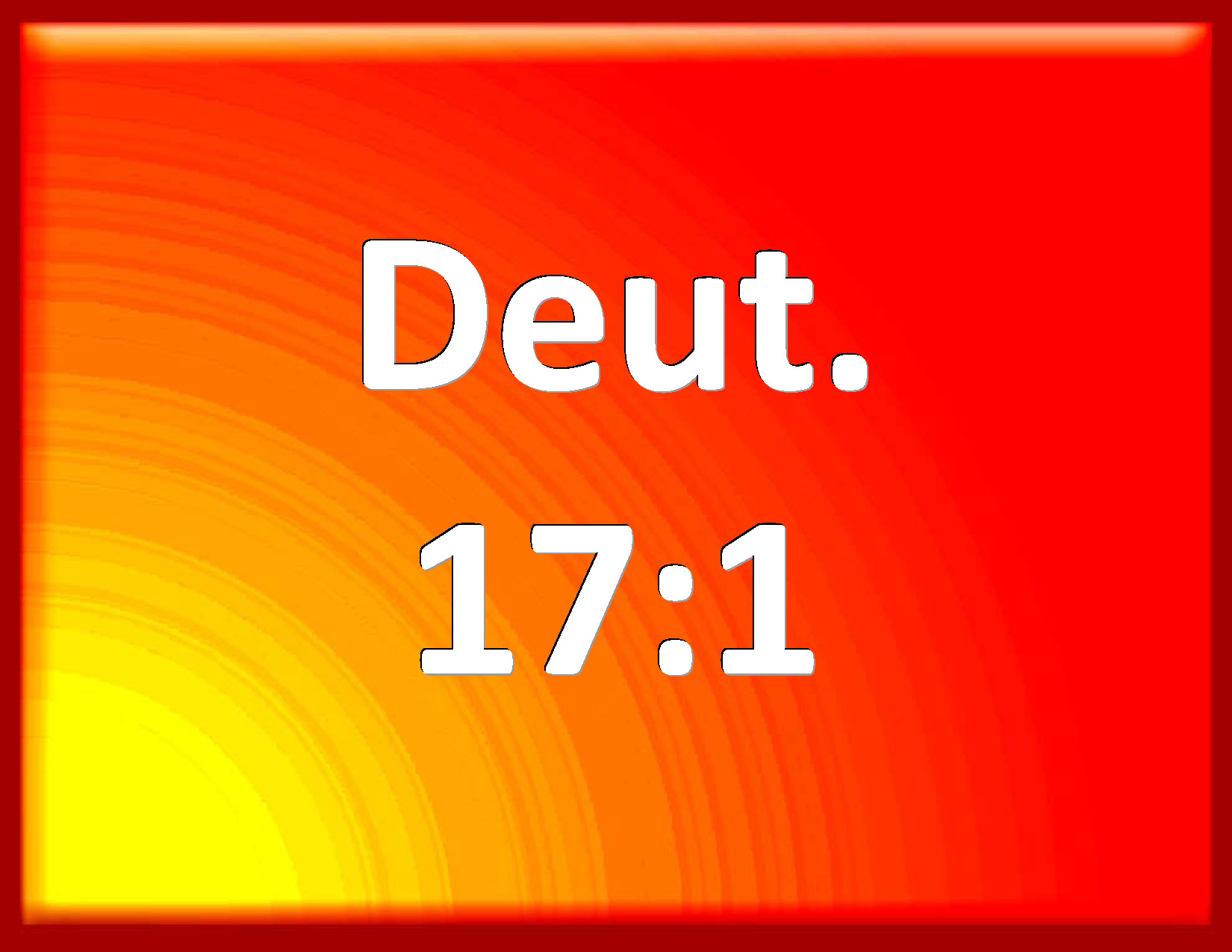 Bible Verse Slide Deuteronomy 17:1 You shall not sacrifice to the LORD your God any bullock, or sheep, wherein is blemish, or any bad reputation: for that is an abomination to the LORD your God. KJV: Thou shalt not sacrifice unto the LORD thy God any bullock, or sheep, wherein is blemish, or any evilfavouredness: for that is an abomination unto the LORD thy God. DRB: Thou shalt not sacrifice to the Lord thy God a sheep, or an ox, wherein there is blemish, or any fault: for that is an abomination to the Lord thy God. DBT: Thou shalt not sacrifice to Jehovah thy God an ox or sheep wherein is a defect, or anything bad; for it is an abomination to Jehovah thy God. ERV: Thou shalt not sacrifice unto the LORD thy God an ox, or a sheep, wherein is a blemish, or any evil-favouredness: for that is an abomination unto the LORD thy God. WBT: Thou shalt not sacrifice to the LORD thy God any bullock, or sheep, in which is blemish, or any evil favoredness: for that is an abomination to the LORD thy God. WEB: You shall not sacrifice to Yahweh your God an ox, or a sheep, in which is a blemish, [or] anything evil; for that is an abomination to Yahweh your God. YLT: Thou dost not sacrifice to Jehovah thy God ox or sheep in which there is a blemish — any evil thing; for it is the abomination of Jehovah thy God.Links Deuteronomy 17:1 NIV • Deuteronomy 17:1 NLT • Deuteronomy 17:1 ESV • Deuteronomy 17:1 NASB • Deuteronomy 17:1 KJV • Deuteronomy 17:1 Interlinear • Deuteronomy 17:1 Commentaries • Deuteronomy 17:1 Parallel Texts • Deuteronomy 17:1 Bible Apps • Deuteronomy 17:1 Parallel • Bible Hub |