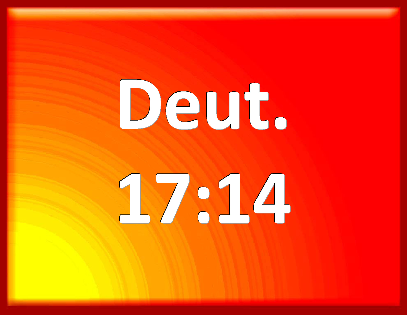 Bible Verse Slide Deuteronomy 17:14 When you are come to the land which the LORD your God gives you, and shall possess it, and shall dwell therein, and shall say, I will set a king over me, like as all the nations that are about me; KJV: When thou art come unto the land which the LORD thy God giveth thee, and shalt possess it, and shalt dwell therein, and shalt say, I will set a king over me, like as all the nations that are about me; DRB: When thou art come into the land, which the Lord thy God will give thee, and possessest it, and shalt say: I will set a king over me, as all nations have that are round about: DBT: When thou comest unto the land which Jehovah thy God giveth thee, and shalt possess it, and shalt dwell therein, and shalt say, I will set a king over me, like all the nations that are about me; ERV: When thou art come unto the land which the LORD thy God giveth thee, and shalt possess it, and shalt dwell therein; and shalt say, I will set a king over me, like as all the nations that are round about me; WBT: When thou art come into the land which the LORD thy God giveth thee, and shalt possess it, and shalt dwell in it, and shalt say, I will set a king over me, like as all the nations that are about me; WEB: When you are come to the land which Yahweh your God gives you, and shall possess it, and shall dwell therein, and shall say, "I will set a king over me, like all the nations that are around me;" YLT: When thou comest in unto the land which Jehovah thy God is giving to thee, and hast possessed it, and dwelt in it, and thou hast said, Let me set over me a king like all the nations which are round about me, — Links Deuteronomy 17:14 NIV • Deuteronomy 17:14 NLT • Deuteronomy 17:14 ESV • Deuteronomy 17:14 NASB • Deuteronomy 17:14 KJV • Deuteronomy 17:14 Interlinear • Deuteronomy 17:14 Commentaries • Deuteronomy 17:14 Parallel Texts • Deuteronomy 17:14 Bible Apps • Deuteronomy 17:14 Parallel • Bible Hub |