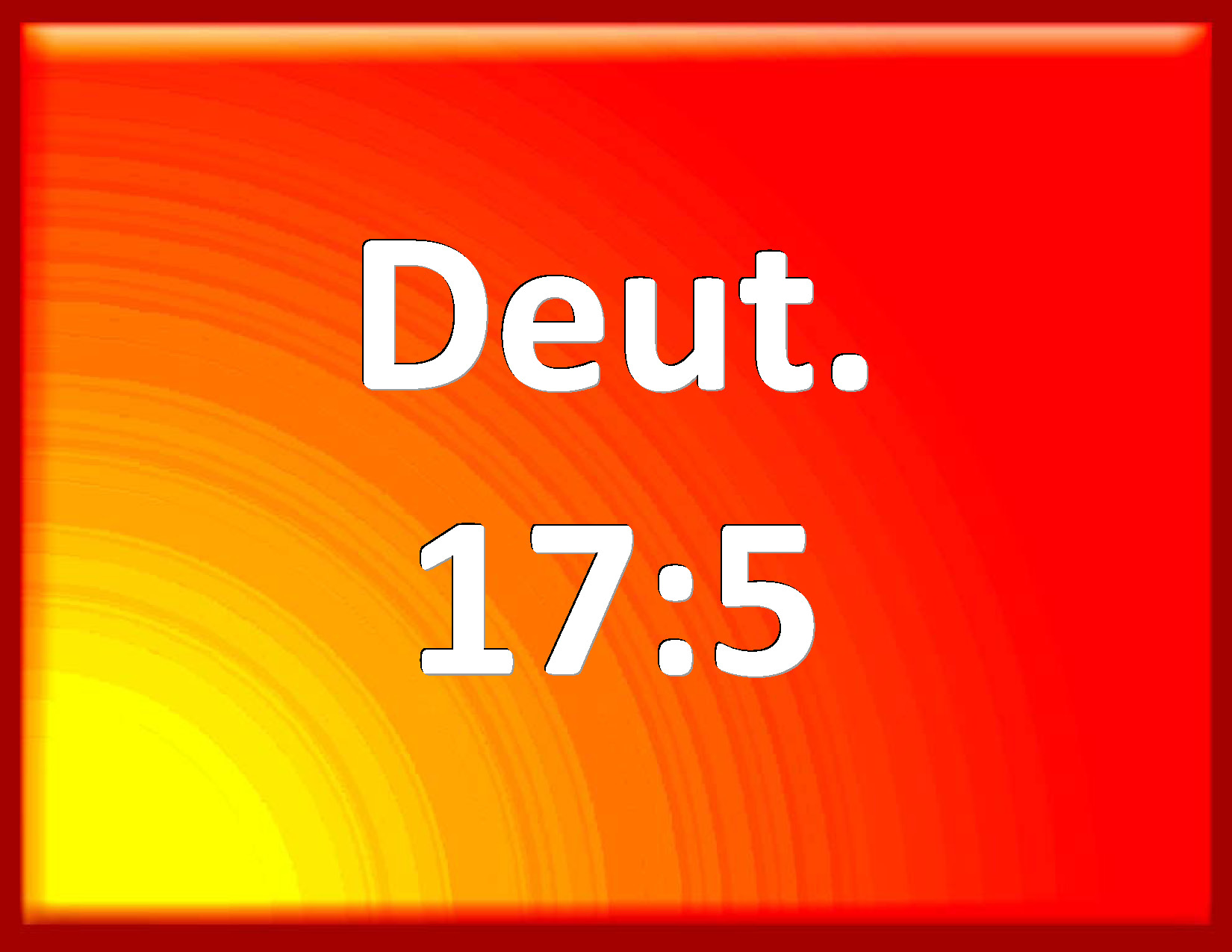 Bible Verse Slide Deuteronomy 17:5 Then shall you bring forth that man or that woman, which have committed that wicked thing, to your gates, even that man or that woman, and shall stone them with stones, till they die. KJV: Then shalt thou bring forth that man or that woman, which have committed that wicked thing, unto thy gates, even that man or that woman, and shalt stone them with stones, till they die. DRB: Thou shalt bring forth the man or the woman, who have committed that most wicked thing, to the gates of thy city, and they shall be stoned. DBT: thou shalt bring forth that man or that woman, who committed that wicked thing, unto thy gates, the man or the woman, and shalt stone them with stones, that they die. ERV: then shalt thou bring forth that man or that woman, which have done this evil thing, unto thy gates, even the man or the woman; and thou shalt stone them with stones, that they die. WBT: Then shalt thou bring forth to thy gates that man or that woman, who have committed that wicked thing, even that man or that woman, and shalt stone them with stones, till they die. WEB: then you shall bring forth that man or that woman, who has done this evil thing, to your gates, even the man or the woman; and you shall stone them to death with stones. YLT: Then thou hast brought out that man, or that woman, who hath done this evil thing, unto thy gates — the man or the woman — and thou hast stoned them with stones, and they have died.Links Deuteronomy 17:5 NIV • Deuteronomy 17:5 NLT • Deuteronomy 17:5 ESV • Deuteronomy 17:5 NASB • Deuteronomy 17:5 KJV • Deuteronomy 17:5 Interlinear • Deuteronomy 17:5 Commentaries • Deuteronomy 17:5 Parallel Texts • Deuteronomy 17:5 Bible Apps • Deuteronomy 17:5 Parallel • Bible Hub |