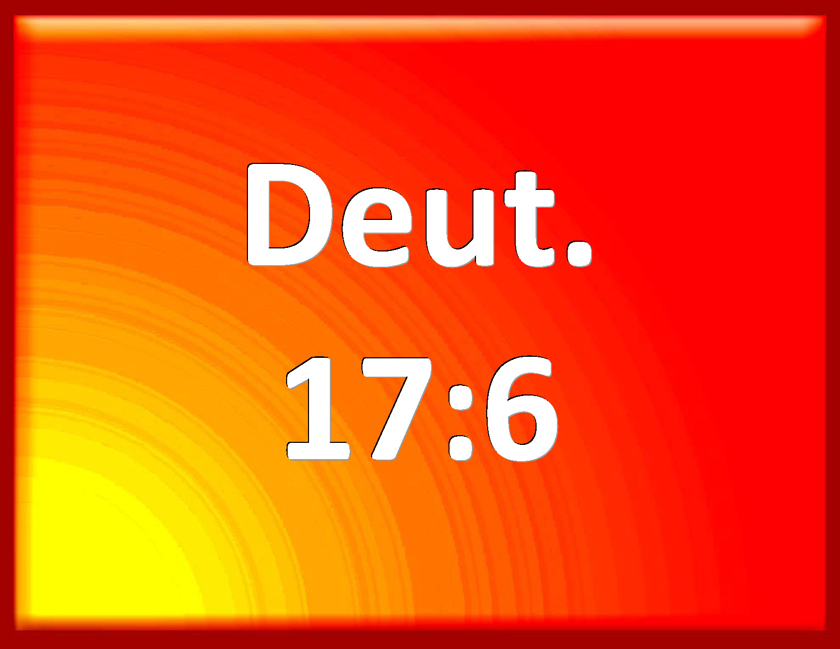 Bible Verse Slide Deuteronomy 17:6 At the mouth of two witnesses, or three witnesses, shall he that is worthy of death be put to death; but at the mouth of one witness he shall not be put to death. KJV: At the mouth of two witnesses, or three witnesses, shall he that is worthy of death be put to death; but at the mouth of one witness he shall not be put to death. DRB: By the mouth of two or three witnesses shall he die that is to be slain. Let no man be put to death, when only one beareth witness against him. DBT: At the mouth of two witnesses, or three witnesses, shall he that is to die be put to death: he shall not be put to death at the mouth of one witness. ERV: At the mouth of two witnesses, or three witnesses, shall he that is to die be put to death; at the mouth of one witness he shall not be put to death. WBT: At the mouth of two witnesses, or three witnesses, shall he that is worthy of death be put to death; but at the mouth of one witness he shall not be put to death. WEB: At the mouth of two witnesses, or three witnesses, shall he who is to die be put to death; at the mouth of one witness he shall not be put to death. YLT: By the mouth of two witnesses or of three witnesses is he who is dead put to death; he is not put to death by the mouth of one witness;Links Deuteronomy 17:6 NIV • Deuteronomy 17:6 NLT • Deuteronomy 17:6 ESV • Deuteronomy 17:6 NASB • Deuteronomy 17:6 KJV • Deuteronomy 17:6 Interlinear • Deuteronomy 17:6 Commentaries • Deuteronomy 17:6 Parallel Texts • Deuteronomy 17:6 Bible Apps • Deuteronomy 17:6 Parallel • Bible Hub |