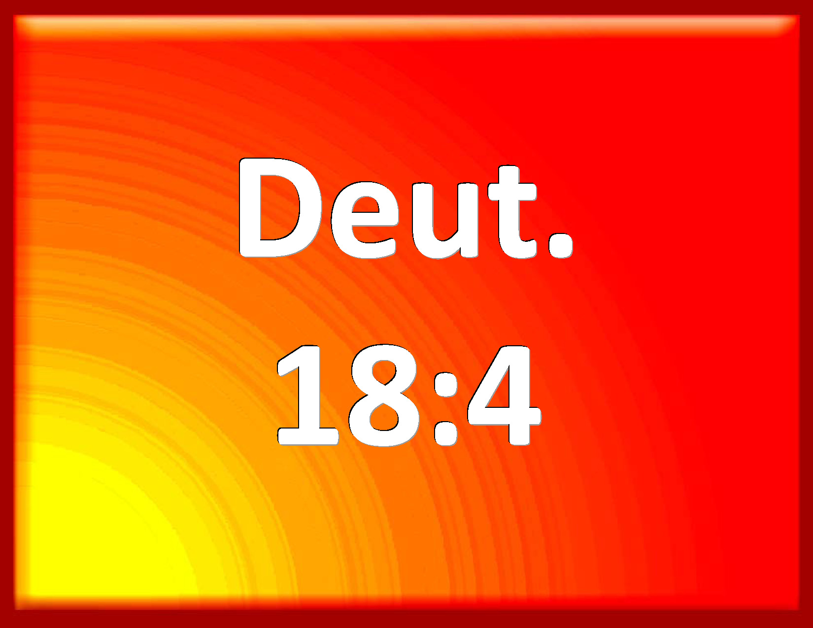 Bible Verse Slide Deuteronomy 18:4 The first fruit also of your corn, of your wine, and of your oil, and the first of the fleece of your sheep, shall you give him. KJV: The firstfruit also of thy corn, of thy wine, and of thine oil, and the first of the fleece of thy sheep, shalt thou give him. DRB: The firstfruits also of corn, of wine, and of oil, and a part of the wool from the shearing of their sheep. DBT: The firstfruits also of thy corn, of thy new wine, and of thine oil, and the firstfruits of the shearing of thy sheep, shalt thou give him; ERV: The firstfruits of thy corn, of thy wine, and of thine oil, and the first of the fleece of thy sheep, shalt thou give him. WBT: The first-fruit also of thy corn, of thy wine, and of thy oil, and the first of the fleece of thy sheep, shalt thou give him. WEB: The first fruits of your grain, of your new wine, and of your oil, and the first of the fleece of your sheep, you shall give him. YLT: the first of thy corn, of thy new wine, and of thine oil, and the first of the fleece of thy flock, thou dost give to him;Links Deuteronomy 18:4 NIV • Deuteronomy 18:4 NLT • Deuteronomy 18:4 ESV • Deuteronomy 18:4 NASB • Deuteronomy 18:4 KJV • Deuteronomy 18:4 Interlinear • Deuteronomy 18:4 Commentaries • Deuteronomy 18:4 Parallel Texts • Deuteronomy 18:4 Bible Apps • Deuteronomy 18:4 Parallel • Bible Hub |