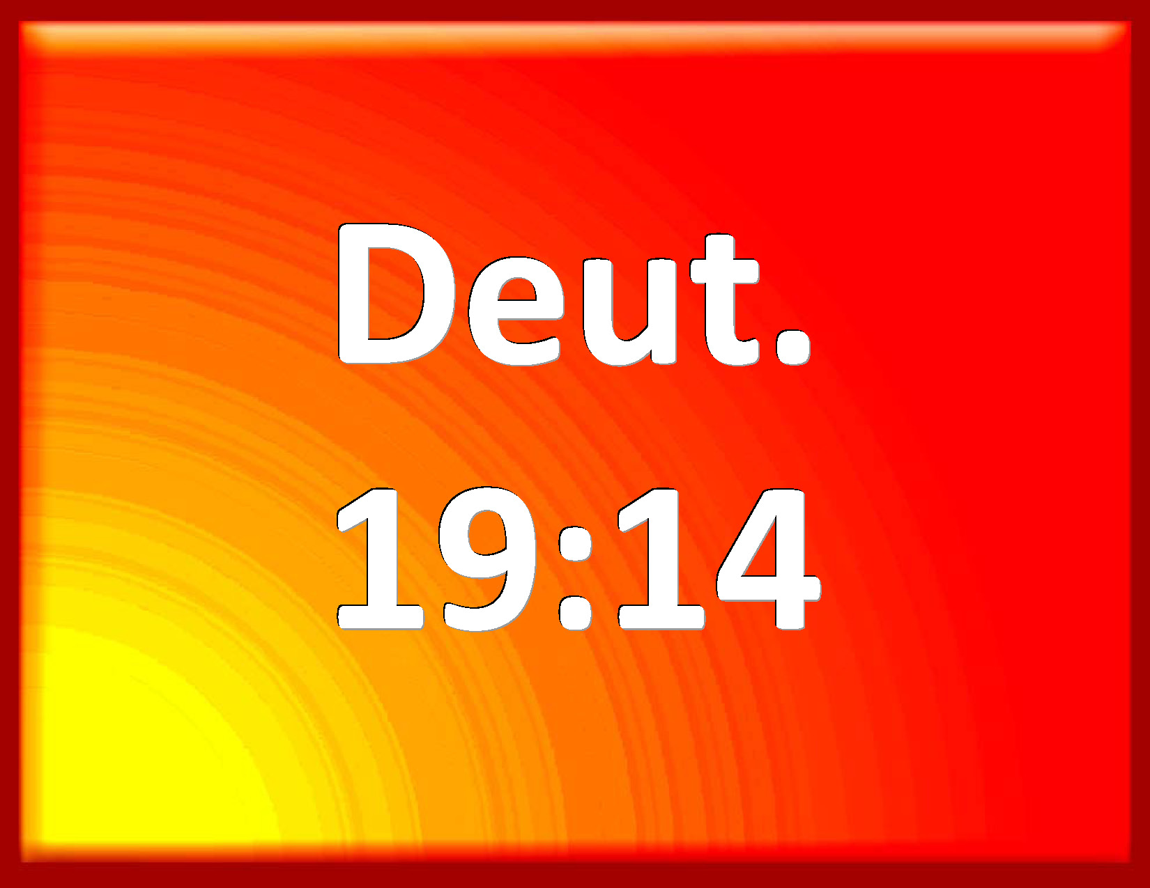 Bible Verse Slide Deuteronomy 19:14 You shall not remove your neighbor's landmark, which they of old time have set in your inheritance, which you shall inherit in the land that the LORD your God gives you to possess it. KJV: Thou shalt not remove thy neighbour's landmark, which they of old time have set in thine inheritance, which thou shalt inherit in the land that the LORD thy God giveth thee to possess it. DRB: Thou shalt not take nor remove thy neighbour's landmark, which thy predecessors have set in thy possession. which the Lord thy God will give thee in the land that thou shalt receive to possess. DBT: Thou shalt not remove thy neighbour's landmark, which they of old time have fixed in thine inheritance, which thou shalt inherit in the land which Jehovah thy God giveth thee to possess. ERV: Thou shalt not remove thy neighbour's landmark, which they of old time have set, in thine inheritance which thou shalt inherit, in the land that the LORD thy God giveth thee to possess it. WBT: Thou shalt not remove thy neighbor's landmark, which they of old time have set in thy inheritance, which thou shalt inherit in the land that the LORD thy God giveth thee to possess it. WEB: You shall not remove your neighbor's landmark, which they of old time have set, in your inheritance which you shall inherit, in the land that Yahweh your God gives you to possess it. YLT: 'Thou dost not remove a border of thy neighbour, which they of former times have made, in thine inheritance, which thou dost inherit in the land which Jehovah thy God is giving to thee to possess it.Links Deuteronomy 19:14 NIV • Deuteronomy 19:14 NLT • Deuteronomy 19:14 ESV • Deuteronomy 19:14 NASB • Deuteronomy 19:14 KJV • Deuteronomy 19:14 Interlinear • Deuteronomy 19:14 Commentaries • Deuteronomy 19:14 Parallel Texts • Deuteronomy 19:14 Bible Apps • Deuteronomy 19:14 Parallel • Bible Hub |