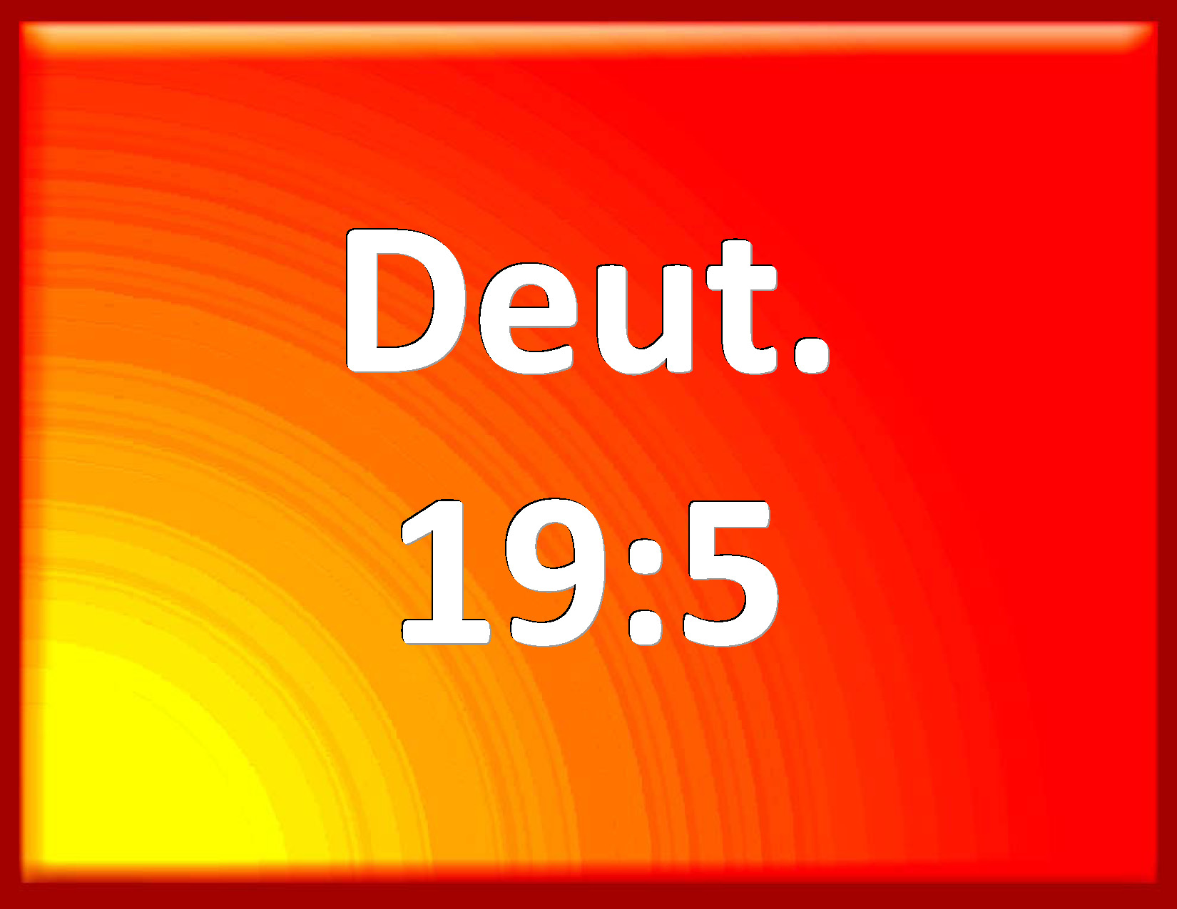Bible Verse Slide Deuteronomy 19:5 As when a man goes into the wood with his neighbor to hew wood, and his hand fetches a stroke with the ax to cut down the tree, and the head slips from the helve, and lights on his neighbor, that he die; he shall flee to one of those cities, and live: KJV: As when a man goeth into the wood with his neighbour to hew wood, and his hand fetcheth a stroke with the axe to cut down the tree, and the head slippeth from the helve, and lighteth upon his neighbour, that he die; he shall flee unto one of those cities, and live: DRB: But to have gone with him to the wood to hew wood, and in cutting down the tree the axe slipped out of his hand, and the iron slipping from the handle struck his friend, and killed him: he shall flee to one of the cities aforesaid, and live: DBT: as when he goeth into the wood with his neighbour to hew wood, and his hand fetcheth a stroke with the axe to cut down the tree, and the iron slippeth from the handle, and lighteth upon his neighbour, that he die; such an one shall flee unto one of these cities, and live; ERV: as when a man goeth into the forest with his neighbour to hew wood, and his hand fetcheth a stroke with the axe to cut down the tree, and the head slippeth from the helve, and lighteth upon his neighbour, that he die; he shall flee unto one of these cities and live: WBT: As when a man goeth into the wood with his neighbor to hew wood, and his hand maketh a stroke with the ax to cut down the tree, and the head slippeth from the helve, and falleth upon his neighbor, that he dieth: he shall flee to one of these cities, and live: WEB: as when a man goes into the forest with his neighbor to chop wood, and his hand fetches a stroke with the axe to cut down the tree, and the head slips from the handle, and lights on his neighbor, so that he dies; he shall flee to one of these cities and live: YLT: even he who cometh in with his neighbour into a forest to hew wood, and his hand hath driven with an axe to cut the tree, and the iron hath slipped from the wood, and hath met his neighbour, and he hath died — he doth flee unto one of these cities, and hath lived,Links Deuteronomy 19:5 NIV • Deuteronomy 19:5 NLT • Deuteronomy 19:5 ESV • Deuteronomy 19:5 NASB • Deuteronomy 19:5 KJV • Deuteronomy 19:5 Interlinear • Deuteronomy 19:5 Commentaries • Deuteronomy 19:5 Parallel Texts • Deuteronomy 19:5 Bible Apps • Deuteronomy 19:5 Parallel • Bible Hub |