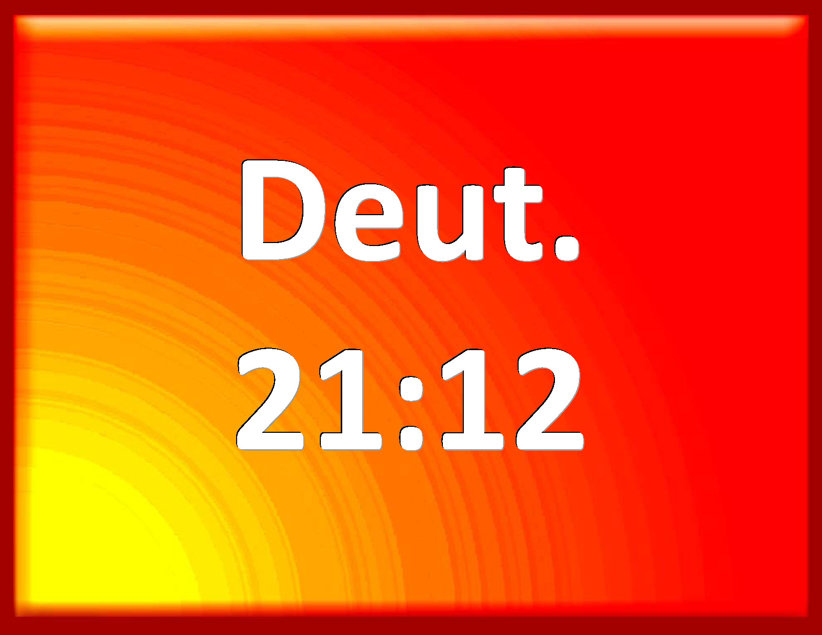 Bible Verse Slide Deuteronomy 21:12 Then you shall bring her home to your house, and she shall shave her head, and pare her nails; KJV: Then thou shalt bring her home to thine house; and she shall shave her head, and pare her nails; DRB: Thou shalt bring her into thy house: and she shall shave her hair, and pare her nails, DBT: then thou shalt bring her home to thy house; and she shall shave her head, and pare her nails; ERV: then thou shalt bring her home to thine house; and she shall shave her head, and pare her nails; WBT: Then thou shalt bring her home to thy house, and she shall shave her head, and pare her nails: WEB: then you shall bring her home to your house; and she shall shave her head, and pare her nails; YLT: then thou hast brought her in unto the midst of thy household, and she hath shaved her head, and prepared her nails,Links Deuteronomy 21:12 NIV • Deuteronomy 21:12 NLT • Deuteronomy 21:12 ESV • Deuteronomy 21:12 NASB • Deuteronomy 21:12 KJV • Deuteronomy 21:12 Interlinear • Deuteronomy 21:12 Commentaries • Deuteronomy 21:12 Parallel Texts • Deuteronomy 21:12 Bible Apps • Deuteronomy 21:12 Parallel • Bible Hub |
