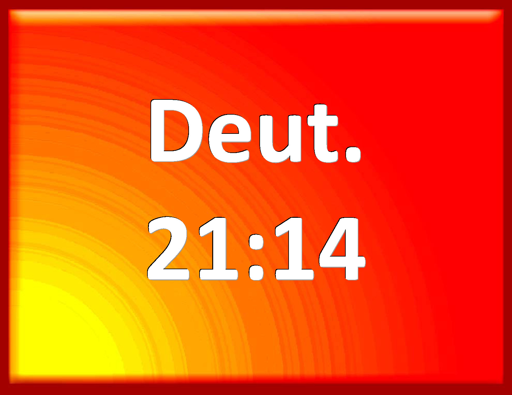 Bible Verse Slide Deuteronomy 21:14 And it shall be, if you have no delight in her, then you shall let her go where she will; but you shall not sell her at all for money, you shall not make merchandise of her, because you have humbled her. KJV: And it shall be, if thou have no delight in her, then thou shalt let her go whither she will; but thou shalt not sell her at all for money, thou shalt not make merchandise of her, because thou hast humbled her. DRB: Rut if afterwards she please thee not, thou shalt let her go free, but thou mayst not sell her for money nor oppress her by might because thou hast humbled her. DBT: And it shall be, if thou have no delight in her, then thou shalt let her go according to her desire; but thou shalt in no wise sell her for money; thou shalt not treat her as a slave, because thou hast humbled her. ERV: And it shall be, if thou have no delight in her, then thou shalt let her go whither she will; but thou shalt not sell her at all for money, thou shalt not deal with her as a slave, because thou hast humbled her. WBT: And it shall be, if thou shalt have no delight in her, then thou shalt let her go whither she will; but thou shalt not sell her at all for money; thou shalt not make merchandise of her, because thou hast humbled her. WEB: It shall be, if you have no delight in her, then you shall let her go where she will; but you shall not sell her at all for money, you shall not deal with her as a slave, because you have humbled her. YLT: And it hath been — if thou hast not delighted in her, that thou hast sent her away at her desire, and thou dost not at all sell her for money; thou dost not tyrannize over her, because that thou hast humbled her.Links Deuteronomy 21:14 NIV • Deuteronomy 21:14 NLT • Deuteronomy 21:14 ESV • Deuteronomy 21:14 NASB • Deuteronomy 21:14 KJV • Deuteronomy 21:14 Interlinear • Deuteronomy 21:14 Commentaries • Deuteronomy 21:14 Parallel Texts • Deuteronomy 21:14 Bible Apps • Deuteronomy 21:14 Parallel • Bible Hub |