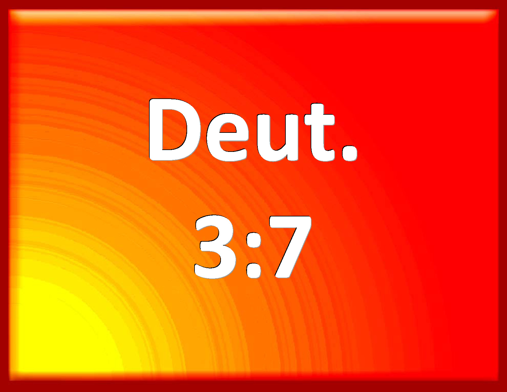 Bible Verse Slide Deuteronomy 3:7 But all the cattle, and the spoil of the cities, we took for a prey to ourselves. KJV: But all the cattle, and the spoil of the cities, we took for a prey to ourselves. DRB: But the cattle and the spoils of the cities we took for our prey. DBT: But all the cattle and the spoil of the cities we took as booty for ourselves. ERV: But all the cattle, and the spoil of the cities, we took for a prey unto ourselves. WBT: But all the cattle, and the spoil of the cities, we took for a prey to ourselves. WEB: But all the livestock, and the spoil of the cities, we took for a prey to ourselves. YLT: and all the cattle, and the spoil of the cities, we have spoiled for ourselves.Links Deuteronomy 3:7 NIV • Deuteronomy 3:7 NLT • Deuteronomy 3:7 ESV • Deuteronomy 3:7 NASB • Deuteronomy 3:7 KJV • Deuteronomy 3:7 Interlinear • Deuteronomy 3:7 Commentaries • Deuteronomy 3:7 Parallel Texts • Deuteronomy 3:7 Bible Apps • Deuteronomy 3:7 Parallel • Bible Hub |