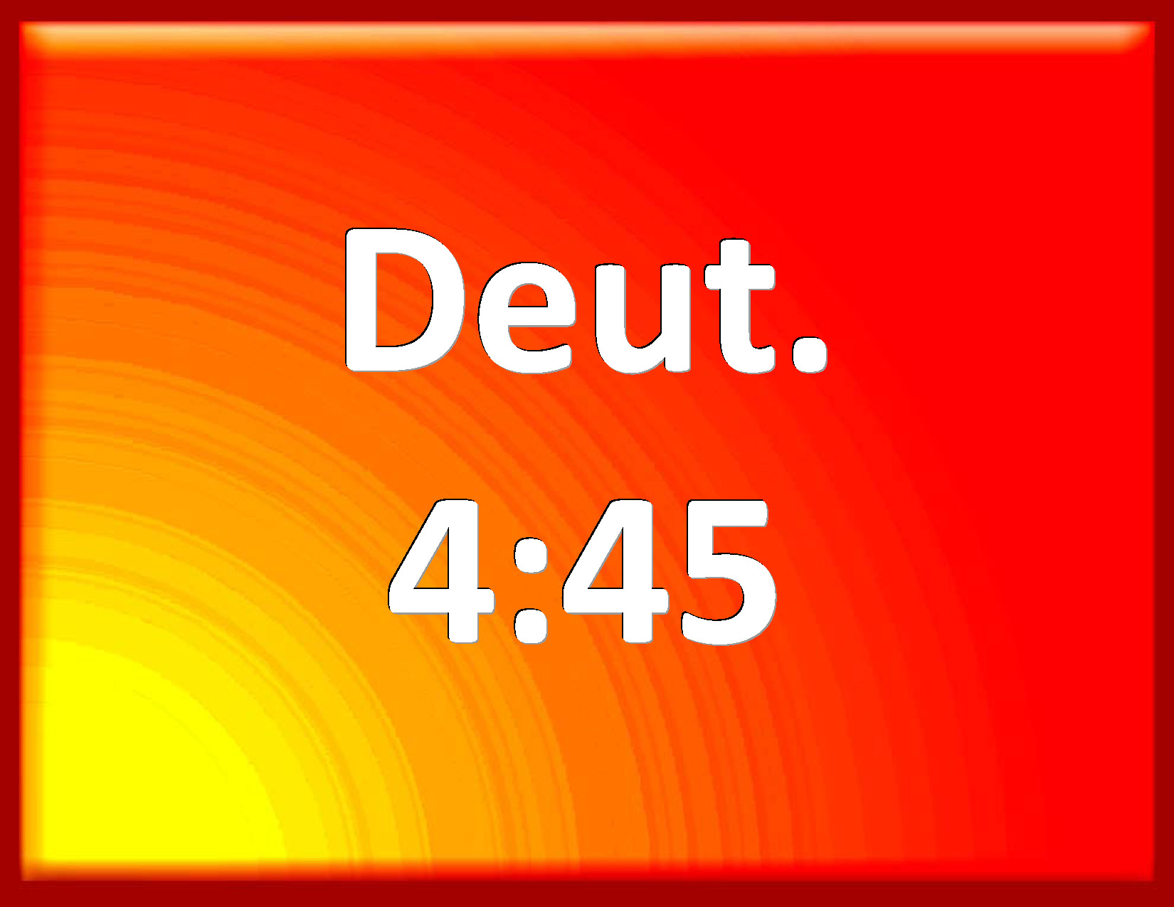 Bible Verse Slide Deuteronomy 4:45 These are the testimonies, and the statutes, and the judgments, which Moses spoke to the children of Israel, after they came forth out of Egypt. KJV: These are the testimonies, and the statutes, and the judgments, which Moses spake unto the children of Israel, after they came forth out of Egypt, DRB: And these are the testimonies and ceremonies and judgments, which he spoke to the children of Israel, when they came out of Egypt, DBT: these are the testimonies, and the statutes, and the ordinances that Moses declared to the children of Israel, when they came out of Egypt, ERV: these are the testimonies, and the statutes, and the judgments, which Moses spake unto the children of Israel, when they came forth out of Egypt; WBT: These are the testimonies, and the statutes, and the judgments, which Moses spoke to the children of Israel, after they came forth from Egypt, WEB: these are the testimonies, and the statutes, and the ordinances, which Moses spoke to the children of Israel, when they came forth out of Egypt, YLT: these are the testimonies, and the statutes, and the judgments, which Moses hath spoken unto the sons of Israel, in their coming out of Egypt,Links Deuteronomy 4:45 NIV • Deuteronomy 4:45 NLT • Deuteronomy 4:45 ESV • Deuteronomy 4:45 NASB • Deuteronomy 4:45 KJV • Deuteronomy 4:45 Interlinear • Deuteronomy 4:45 Commentaries • Deuteronomy 4:45 Parallel Texts • Deuteronomy 4:45 Bible Apps • Deuteronomy 4:45 Parallel • Bible Hub |