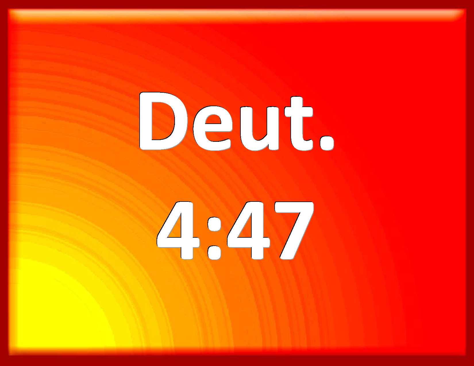 Bible Verse Slide Deuteronomy 4:47 And they possessed his land, and the land of Og king of Bashan, two kings of the Amorites, which were on this side Jordan toward the sun rise; KJV: And they possessed his land, and the land of Og king of Bashan, two kings of the Amorites, which were on this side Jordan toward the sunrising; DRB: Possessed his land, and the land of Og king of Basan, of the two kings of the Amorrhites, who were beyond the Jordan towards the rising of the sun: DBT: and they took possession of his land, and the land of Og the king of Bashan, two kings of the Amorites, who were on this side the Jordan, toward the sun-rising; ERV: and they took his land in possession, and the land of Og king of Bashan, the two kings of the Amorites, which were beyond Jordan toward the sunrising; WBT: And they possessed his land, and the land of Og king of Bashan, two kings of the Amorites, who were on the side of Jordan, towards the sun-rising; WEB: They took his land in possession, and the land of Og king of Bashan, the two kings of the Amorites, who were beyond the Jordan toward the sunrise; YLT: and they possess his land, and the land of Og king of Bashan, two kings of the Amorite who are beyond the Jordan, towards the sun-rising;Links Deuteronomy 4:47 NIV • Deuteronomy 4:47 NLT • Deuteronomy 4:47 ESV • Deuteronomy 4:47 NASB • Deuteronomy 4:47 KJV • Deuteronomy 4:47 Interlinear • Deuteronomy 4:47 Commentaries • Deuteronomy 4:47 Parallel Texts • Deuteronomy 4:47 Bible Apps • Deuteronomy 4:47 Parallel • Bible Hub |