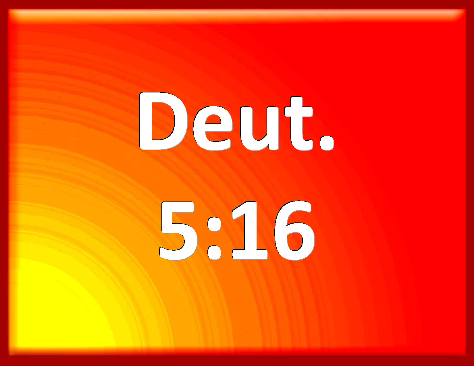 Bible Verse Slide Deuteronomy 5:16 Honor your father and your mother, as the LORD your God has commanded you; that your days may be prolonged, and that it may go well with you, in the land which the LORD your God gives you. KJV: Honour thy father and thy mother, as the LORD thy God hath commanded thee; that thy days may be prolonged, and that it may go well with thee, in the land which the LORD thy God giveth thee. DRB: Honour thy father and mother, as the Lord thy God hath commanded thee, that thou mayst live a long time, and it may be well with thee in the land, which the Lord thy God will give thee. DBT: Honour thy father and thy mother, as Jehovah thy God hath commanded thee; that thy days may be prolonged, and that it may be well with thee in the land which Jehovah thy God giveth thee. ERV: Honour thy father and thy mother, as the LORD thy God commanded thee: that thy days may be long, and that it may go well with thee, upon the land which the LORD thy God giveth thee. WBT: Honor thy father and thy mother, as the LORD thy God hath commanded thee; that thy days may be prolonged, and that it may be well with thee, in the land which the LORD thy God giveth thee. WEB: "Honor your father and your mother, as Yahweh your God commanded you; that your days may be long, and that it may go well with you, in the land which Yahweh your God gives you. YLT: 'Honour thy father and thy mother, as Jehovah thy God hath commanded thee, so that thy days are prolonged, and so that it is well with thee, on the ground which Jehovah thy God is giving to thee.Links Deuteronomy 5:16 NIV • Deuteronomy 5:16 NLT • Deuteronomy 5:16 ESV • Deuteronomy 5:16 NASB • Deuteronomy 5:16 KJV • Deuteronomy 5:16 Interlinear • Deuteronomy 5:16 Commentaries • Deuteronomy 5:16 Parallel Texts • Deuteronomy 5:16 Bible Apps • Deuteronomy 5:16 Parallel • Bible Hub |
