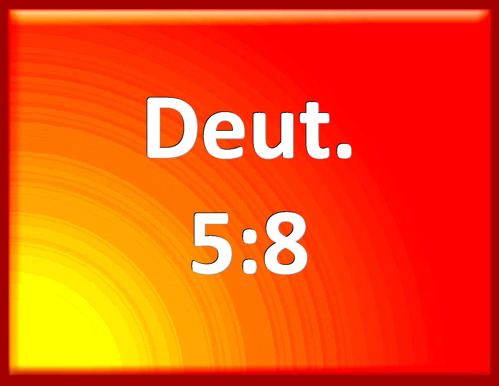 Bible Verse Slide Deuteronomy 5:8 You shall not make you any graven image, or any likeness of any thing that is in heaven above, or that is in the earth beneath, or that is in the waters beneath the earth: KJV: Thou shalt not make thee any graven image, or any likeness of any thing that is in heaven above, or that is in the earth beneath, or that is in the waters beneath the earth: DRB: Thou shalt not make to thyself a graven thing, nor the likeness of any things, that are in heaven above, or that are in the earth beneath, or that abide in the waters under the earth. DBT: Thou shalt not make thyself any graven image, any form of what is in the heavens above, or what is in the earth beneath, or what is in the waters under the earth: ERV: Thou shalt not make unto thee a graven image, the likeness of any form that is in heaven above, or that is in the earth beneath, or that is in the water under the earth: WBT: Thou shalt not make for thee any graven image, or any likeness of any thing that is in heaven above, or that is on the earth beneath, or that is in the waters beneath the earth: WEB: "You shall not make an engraved image for yourself, [nor] any likeness [of anything] that is in heaven above, or that is in the earth beneath, or that is in the water under the earth: YLT: Thou dost not make to thee a graven image, any similitude which is in the heavens above, and which is in the earth beneath, and which is in the waters under the earth;Links Deuteronomy 5:8 NIV • Deuteronomy 5:8 NLT • Deuteronomy 5:8 ESV • Deuteronomy 5:8 NASB • Deuteronomy 5:8 KJV • Deuteronomy 5:8 Interlinear • Deuteronomy 5:8 Commentaries • Deuteronomy 5:8 Parallel Texts • Deuteronomy 5:8 Bible Apps • Deuteronomy 5:8 Parallel • Bible Hub |