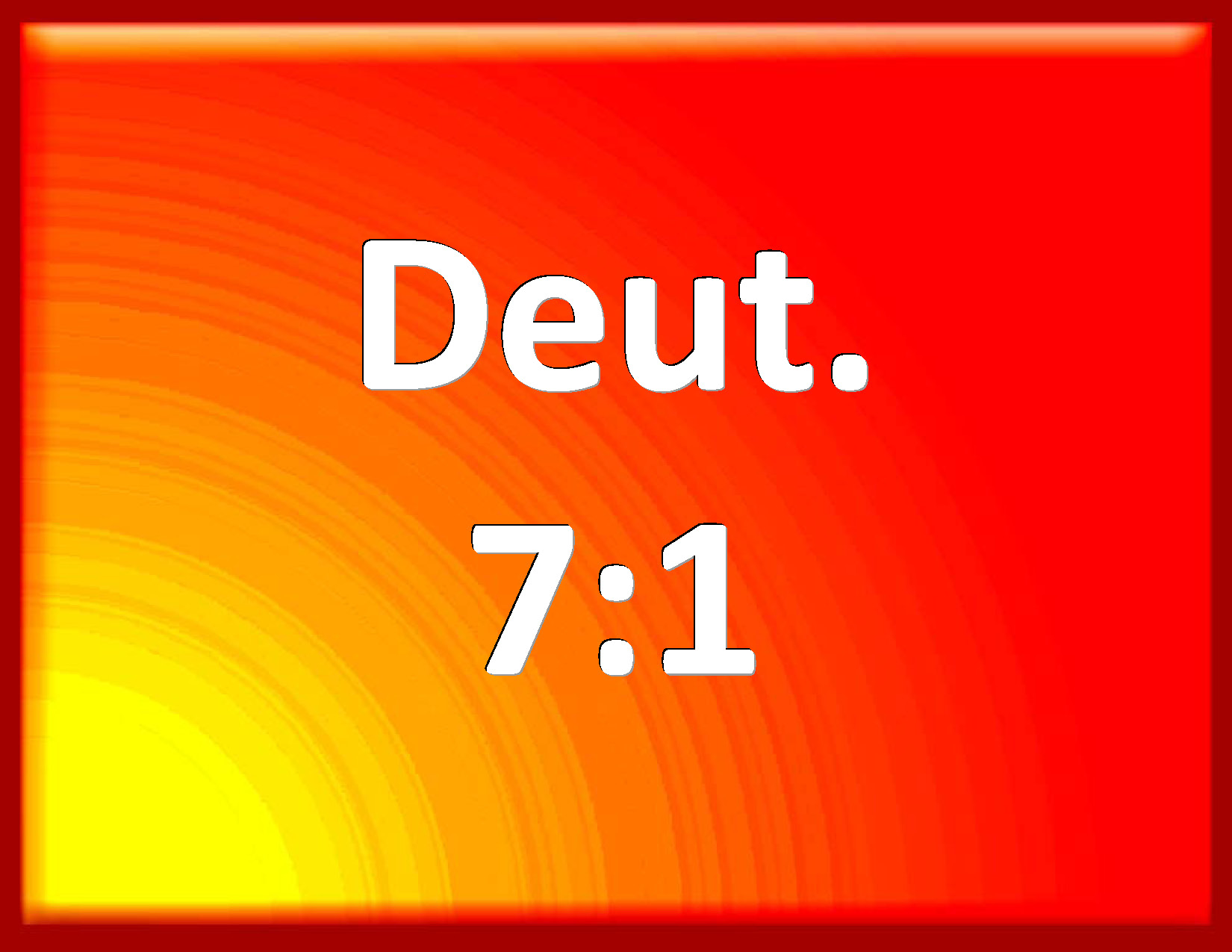 Bible Verse Slide Deuteronomy 7:1 When the LORD your God shall bring you into the land where you go to possess it, and has cast out many nations before you, the Hittites, and the Girgashites, and the Amorites, and the Canaanites, and the Perizzites, and the Hivites, and the Jebusites, seven nations greater and mightier than you; KJV: When the LORD thy God shall bring thee into the land whither thou goest to possess it, and hath cast out many nations before thee, the Hittites, and the Girgashites, and the Amorites, and the Canaanites, and the Perizzites, and the Hivites, and the Jebusites, seven nations greater and mightier than thou; DRB: When the Lord thy God shall have brought thee into the land, which thou art going in to possess, and shall have destroyed many nations before thee, the Hethite, and the Gergezite, and the Amorrhite, and the Chanaanite, and the Pherezite, and the Hevite, and the Jebusite, seven nations much more numerous than thou art, and stronger than thou: DBT: When Jehovah thy God shall bring thee into the land whither thou goest to possess it, and shall cast out many nations from before thee, the Hittites, and the Girgashites, and the Amorites, and the Canaanites, and the Perizzites, and the Hivites, and the Jebusites, seven nations greater and mightier than thou, ERV: When the LORD thy God shall bring thee into the land whither thou goest to possess it, and shall cast out many nations before thee, the Hittite, and the Girgashite, and the Amorite, and the Canaanite, and the Perizzite, and the Hivite, and the Jebusite, seven nations greater and mightier than thou; WBT: When the LORD thy God shall bring thee into the land whither thou goest to possess it, and hath cast out many nations before thee, the Hittites, and the Girgashites, and the Amorites, and the Canaanites, and the Perrizites, and the Hivites, and the Jebusites, seven nations greater and mightier than thou; WEB: When Yahweh your God shall bring you into the land where you go to possess it, and shall cast out many nations before you, the Hittite, and the Girgashite, and the Amorite, and the Canaanite, and the Perizzite, and the Hivite, and the Jebusite, seven nations greater and mightier than you; YLT: 'When Jehovah thy God doth bring thee in unto the land whither thou art going in to possess it, and He hath cast out many nations from thy presence, the Hittite, and the Girgashite, and the Amorite, and the Canaanite, and the Perizzite, and the Hivite, and the Jebusite, seven nations more numerous and mighty than thou,Links Deuteronomy 7:1 NIV • Deuteronomy 7:1 NLT • Deuteronomy 7:1 ESV • Deuteronomy 7:1 NASB • Deuteronomy 7:1 KJV • Deuteronomy 7:1 Interlinear • Deuteronomy 7:1 Commentaries • Deuteronomy 7:1 Parallel Texts • Deuteronomy 7:1 Bible Apps • Deuteronomy 7:1 Parallel • Bible Hub |