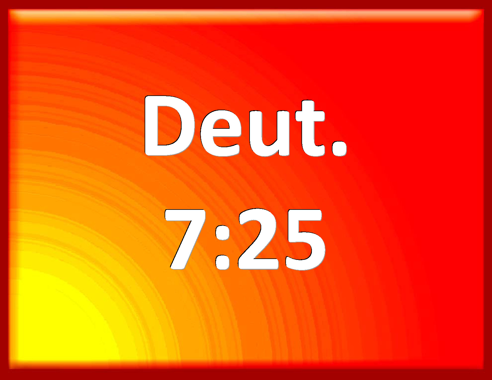 Bible Verse Slide Deuteronomy 7:25 The graven images of their gods shall you burn with fire: you shall not desire the silver or gold that is on them, nor take it to you, lest you be snared therein: for it is an abomination to the LORD your God. KJV: The graven images of their gods shall ye burn with fire: thou shalt not desire the silver or gold that is on them, nor take it unto thee, lest thou be snared therein: for it is an abomination to the LORD thy God. DRB: Their graven things thou shalt burn with fire: thou shalt not covet the silver and gold of which they are made, neither shalt thou take to thee any thing thereof, lest thou offend, because it is an abomination to the Lord thy God. DBT: The graven images of their gods shall ye burn with fire; thou shalt not covet the silver and gold that is on them and take it unto thee, lest thou be ensnared therein; for it is an abomination to Jehovah thy God. ERV: The graven images of their gods shall ye burn with fire: thou shalt not covet the silver or the gold that is on them, nor take it unto thee, lest thou be snared therein: for it is an abomination to the LORD thy God: WBT: The graven images of their gods shall ye burn with fire: thou shalt not desire the silver or gold that is on them, nor take it to thee, lest thou shouldst be snared in it: for it is an abomination to the LORD thy God. WEB: You shall burn the engraved images of their gods with fire. You shall not covet the silver or the gold that is on them, nor take it for yourself, lest you be snared in it; for it is an abomination to Yahweh your God. YLT: The graven images of their gods ye do burn with fire; thou dost not desire the silver and gold on them, nor hast thou taken it to thyself, lest thou be snared by it, for the abomination of Jehovah thy God it is;Links Deuteronomy 7:25 NIV • Deuteronomy 7:25 NLT • Deuteronomy 7:25 ESV • Deuteronomy 7:25 NASB • Deuteronomy 7:25 KJV • Deuteronomy 7:25 Interlinear • Deuteronomy 7:25 Commentaries • Deuteronomy 7:25 Parallel Texts • Deuteronomy 7:25 Bible Apps • Deuteronomy 7:25 Parallel • Bible Hub |
