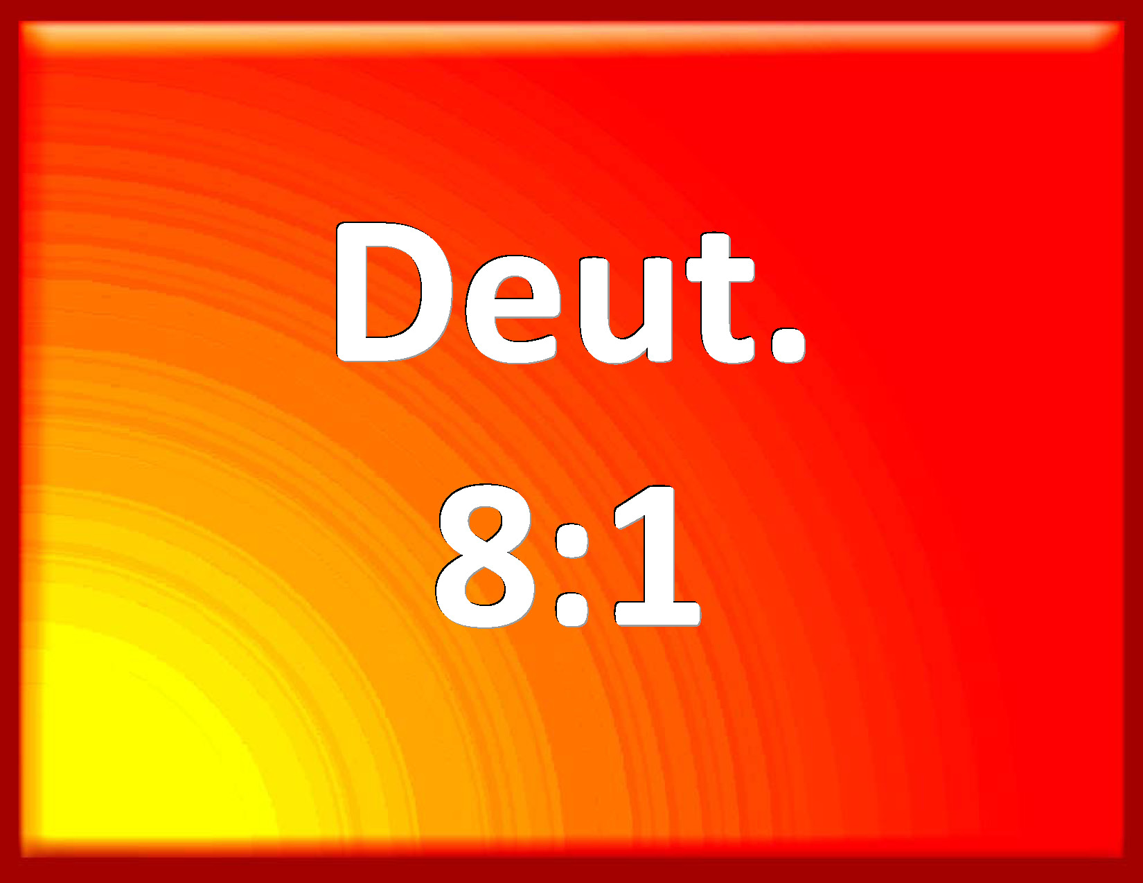 Bible Verse Slide Deuteronomy 8:1 All the commandments which I command you this day shall you observe to do, that you may live, and multiply, and go in and possess the land which the LORD swore to your fathers. KJV: All the commandments which I command thee this day shall ye observe to do, that ye may live, and multiply, and go in and possess the land which the LORD sware unto your fathers. DRB: All the commandments, that I command thee this day, take great care to observe: that you may live, and be multiplied, and going in may possess the land, for which the Lord swore to your fathers. DBT: Every commandment which I command thee this day shall ye take heed to do, that ye may live, and multiply, and enter in and possess the land which Jehovah swore unto your fathers. ERV: All the commandment which I command thee this day shall ye observe to do, that ye may live, and multiply, and go in and possess the land which the LORD sware unto your fathers. WBT: All the commandments which I command thee this day shall ye observe to do, that ye may live, and multiply, and go in and possess the land which the LORD swore to your fathers. WEB: You shall observe to do all the commandment which I command you this day, that you may live, and multiply, and go in and possess the land which Yahweh swore to your fathers. YLT: 'All the command which I am commanding thee to-day ye observe to do, so that ye live, and have multiplied, and gone in, and possessed the land which Jehovah hath sworn to your fathers;Links Deuteronomy 8:1 NIV • Deuteronomy 8:1 NLT • Deuteronomy 8:1 ESV • Deuteronomy 8:1 NASB • Deuteronomy 8:1 KJV • Deuteronomy 8:1 Interlinear • Deuteronomy 8:1 Commentaries • Deuteronomy 8:1 Parallel Texts • Deuteronomy 8:1 Bible Apps • Deuteronomy 8:1 Parallel • Bible Hub |