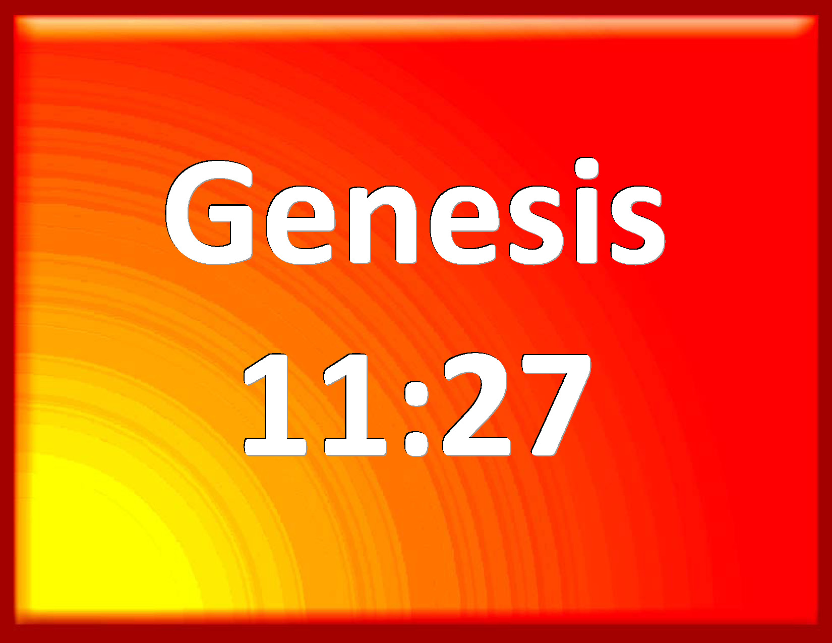 Bible Verse Slide Genesis 11:27 Now these are the generations of Terah: Terah begat Abram, Nahor, and Haran; and Haran begat Lot. KJV: Now these are the generations of Terah: Terah begat Abram, Nahor, and Haran; and Haran begat Lot. DRB: And these are the generations of Thare: Thare begot Abram, Nachor, and Aran. And Aran begot Lot. DBT: And these are the generations of Terah: Terah begot Abram, Nahor, and Haran; and Haran begot Lot. ERV: Now these are the generations of Terah. Terah begat Abram, Nahor, and Haran; and Haran begat Lot. WBT: Now these are the generations of Terah: Terah begat Abram, Nahor, and Haran: and Haran begat Lot. WEB: Now this is the history of the generations of Terah. Terah became the father of Abram, Nahor, and Haran. Haran became the father of Lot. YLT: And these are births of Terah: Terah hath begotten Abram, Nahor, and Haran; and Haran hath begotten Lot;Links Genesis 11:27 NIV • Genesis 11:27 NLT • Genesis 11:27 ESV • Genesis 11:27 NASB • Genesis 11:27 KJV • Genesis 11:27 Interlinear • Genesis 11:27 Commentaries • Genesis 11:27 Parallel Texts • Genesis 11:27 Bible Apps • Genesis 11:27 Parallel • Bible Hub |