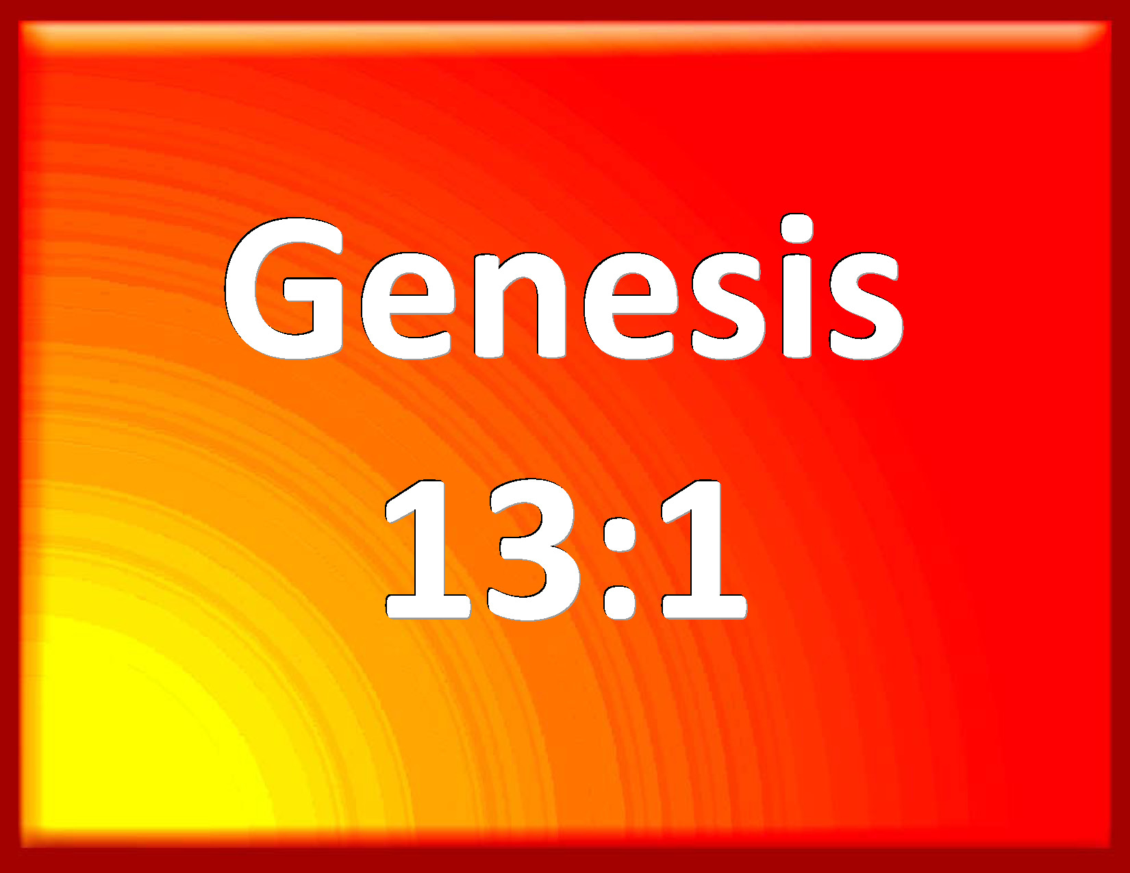 Bible Verse Slide Genesis 13:1 And Abram went up out of Egypt, he, and his wife, and all that he had, and Lot with him, into the south. KJV: And Abram went up out of Egypt, he, and his wife, and all that he had, and Lot with him, into the south. DRB: And Abram went up out of Egypt, he and his wife, and all that he had, and Lot with him, into the south. DBT: And Abram went up out of Egypt, he, and his wife, and all that he had, and Lot with him, towards the south. ERV: And Abram went up out of Egypt, he, and his wife, and all that he had, and Lot with him, into the South. WBT: And Abram returned from Egypt, he, and his wife, and all that he had, and Lot with him, into the south. WEB: Abram went up out of Egypt: he, his wife, all that he had, and Lot with him, into the South. YLT: And Abram goeth up from Egypt (he and his wife, and all that he hath, and Lot with him) towards the south;Links Genesis 13:1 NIV • Genesis 13:1 NLT • Genesis 13:1 ESV • Genesis 13:1 NASB • Genesis 13:1 KJV • Genesis 13:1 Interlinear • Genesis 13:1 Commentaries • Genesis 13:1 Parallel Texts • Genesis 13:1 Bible Apps • Genesis 13:1 Parallel • Bible Hub |