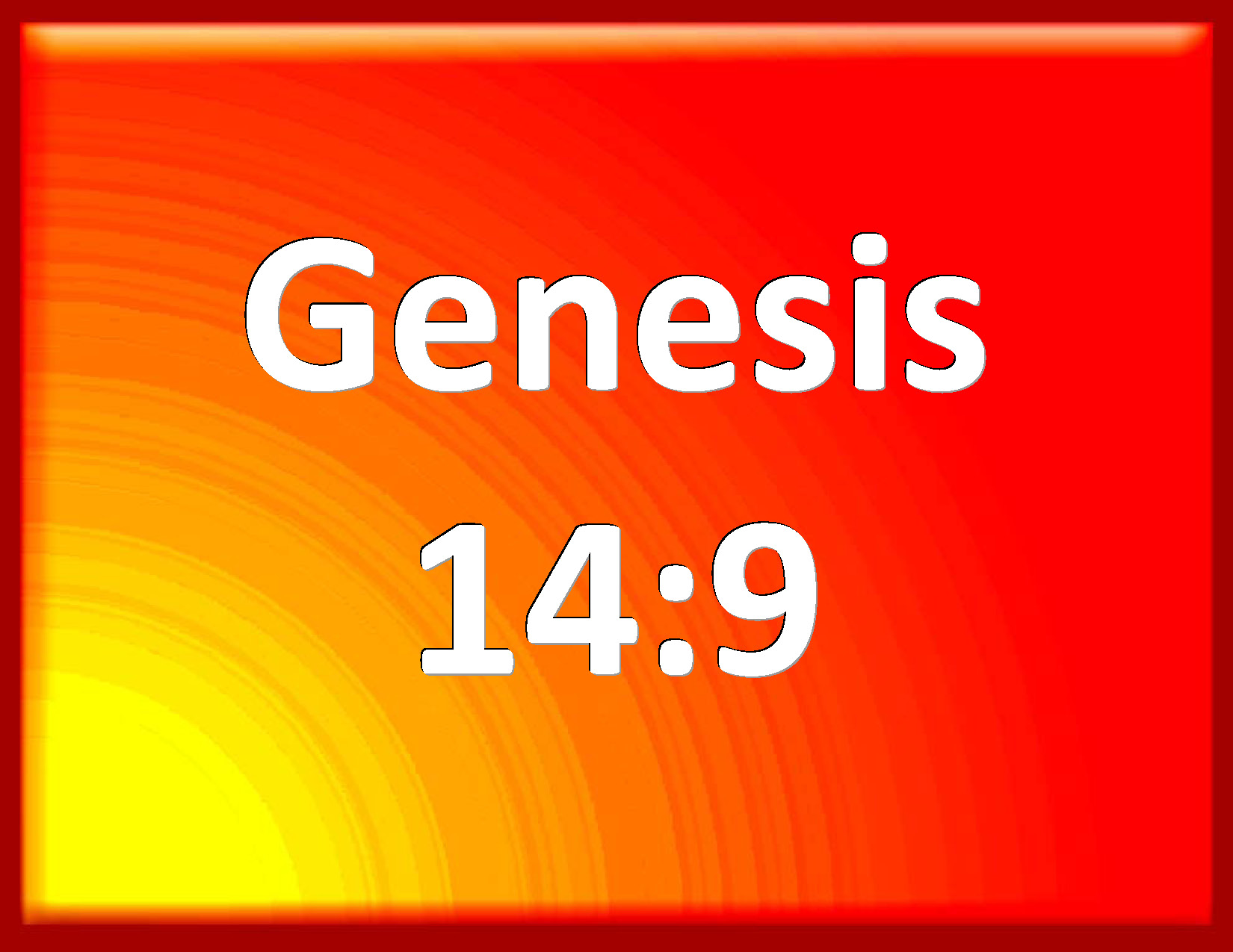 Bible Verse Slide Genesis 14:9 With Chedorlaomer the king of Elam, and with Tidal king of nations, and Amraphel king of Shinar, and Arioch king of Ellasar; four kings with five. KJV: With Chedorlaomer the king of Elam, and with Tidal king of nations, and Amraphel king of Shinar, and Arioch king of Ellasar; four kings with five. DRB: To wit, against Chodorlahomor king of the Elamites, and Thadal king of nations, and Amraphel king of Sennaar, and Arioch king of Pontus: four kings against five. DBT: with Chedorlaomer the king of Elam, and Tidal the king of nations, and Amraphel the king of Shinar, and Arioch the king of Ellasar four kings with the five. ERV: against Chedorlaomer king of Elam, and Tidal king of Goiim, and Amraphel king of Shinar, and Arioch king of Ellasar; four kings against the five. WBT: With Chedorlaomer the king of Elam, and with Tidal king of nations, and Amraphel king of Shinar, and Arioch king of Ellasar; four kings with five. WEB: against Chedorlaomer king of Elam, and Tidal king of Goiim, and Amraphel king of Shinar, and Arioch king of Ellasar; four kings against the five. YLT: with Chedorlaomer king of Elam, and Tidal king of Goyim, and Amraphel king of Shinar, and Arioch king of Ellasar; four kings with the five.Links Genesis 14:9 NIV • Genesis 14:9 NLT • Genesis 14:9 ESV • Genesis 14:9 NASB • Genesis 14:9 KJV • Genesis 14:9 Interlinear • Genesis 14:9 Commentaries • Genesis 14:9 Parallel Texts • Genesis 14:9 Bible Apps • Genesis 14:9 Parallel • Bible Hub |