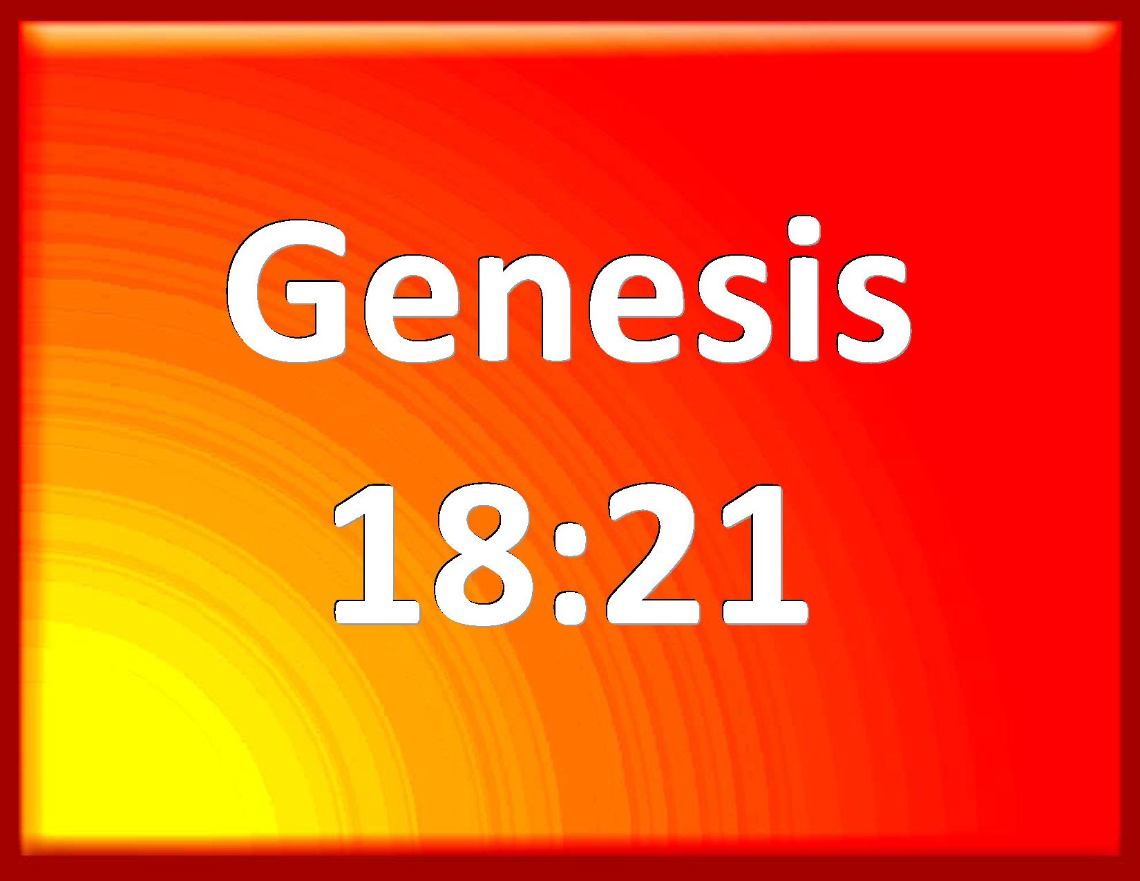 Bible Verse Slide Genesis 18:21 I will go down now, and see whether they have done altogether according to the cry of it, which is come to me; and if not, I will know. KJV: I will go down now, and see whether they have done altogether according to the cry of it, which is come unto me; and if not, I will know. DRB: I will go down and see whether they have done according to the cry that is come to me: or whether it be not so, that I may know. DBT: I will go down now, and see whether they have done altogether according to the cry of it, which is come to me; and if not, I will know it. ERV: I will go down now, and see whether they have done altogether according to the cry of it, which is come unto me; and if not, I will know. WBT: I will go down now, and see whether they have done altogether according to the cry of it, which is come to me; and if not, I will know. WEB: I will go down now, and see whether their deeds are as bad as the reports which have come to me. If not, I will know." YLT: I go down now, and see whether according to its cry which is coming unto Me they have done completely — and if not — I know;'Links Genesis 18:21 NIV • Genesis 18:21 NLT • Genesis 18:21 ESV • Genesis 18:21 NASB • Genesis 18:21 KJV • Genesis 18:21 Interlinear • Genesis 18:21 Commentaries • Genesis 18:21 Parallel Texts • Genesis 18:21 Bible Apps • Genesis 18:21 Parallel • Bible Hub |