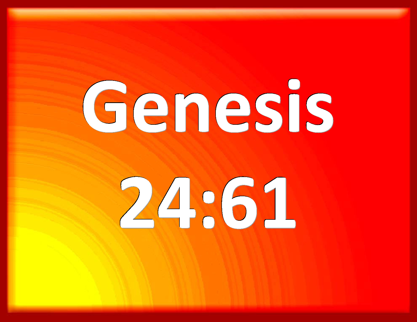 Bible Verse Slide Genesis 24:61 And Rebekah arose, and her damsels, and they rode on the camels, and followed the man: and the servant took Rebekah, and went his way. KJV: And Rebekah arose, and her damsels, and they rode upon the camels, and followed the man: and the servant took Rebekah, and went his way. DRB: So Rebecca and her maids, being set upon camels, followed the man: who with speed returned to his master. DBT: And Rebecca arose, and her maids, and they rode upon the camels, and followed the man. And the servant took Rebecca, and went away. ERV: And Rebekah arose, and her damsels, and they rode upon the camels, and followed the man: and the servant took Rebekah, and went his way. WBT: And Rebekah arose, and her damsels, and they rode upon the camels, and followed the man: and the servant took Rebekah, and went his way. WEB: Rebekah arose with her ladies. They rode on the camels, and followed the man. The servant took Rebekah, and went his way. YLT: And Rebekah and her young women arise, and ride on the camels, and go after the man; and the servant taketh Rebekah and goeth.Links Genesis 24:61 NIV • Genesis 24:61 NLT • Genesis 24:61 ESV • Genesis 24:61 NASB • Genesis 24:61 KJV • Genesis 24:61 Interlinear • Genesis 24:61 Commentaries • Genesis 24:61 Parallel Texts • Genesis 24:61 Bible Apps • Genesis 24:61 Parallel • Bible Hub |