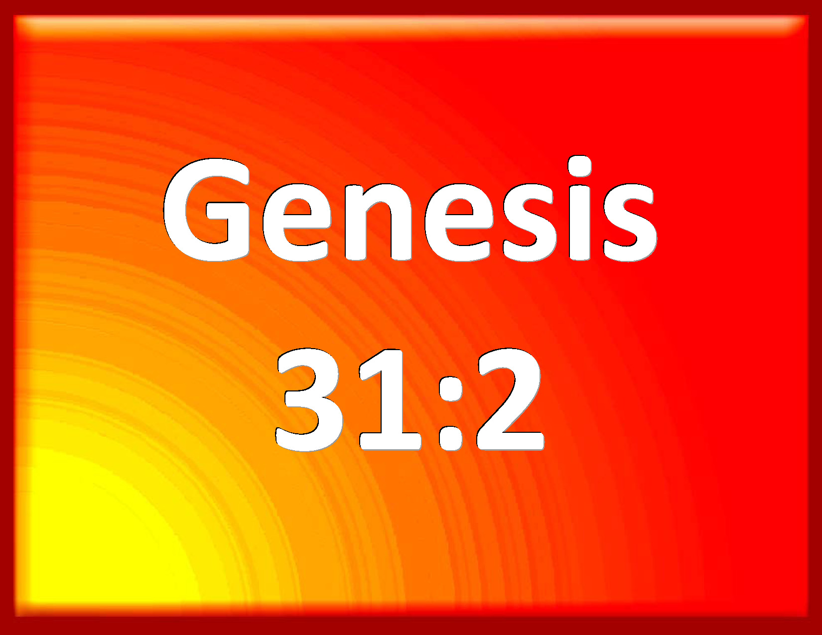 Bible Verse Slide Genesis 31:2 And Jacob beheld the countenance of Laban, and, behold, it was not toward him as before. KJV: And Jacob beheld the countenance of Laban, and, behold, it was not toward him as before. DRB: And perceiving also that Laban's countenance was not towards him as yesterday and the other day, DBT: And Jacob saw the countenance of Laban, and behold, it was not toward him as previously. ERV: And Jacob beheld the countenance of Laban, and, behold, it was not toward him as beforetime. WBT: And Jacob beheld the countenance of Laban, and behold, it was not towards him as before. WEB: Jacob saw the expression on Laban's face, and, behold, it was not toward him as before. YLT: and Jacob seeth the face of Laban, and lo, it is not with him as heretofore.Links Genesis 31:2 NIV • Genesis 31:2 NLT • Genesis 31:2 ESV • Genesis 31:2 NASB • Genesis 31:2 KJV • Genesis 31:2 Interlinear • Genesis 31:2 Commentaries • Genesis 31:2 Parallel Texts • Genesis 31:2 Bible Apps • Genesis 31:2 Parallel • Bible Hub |