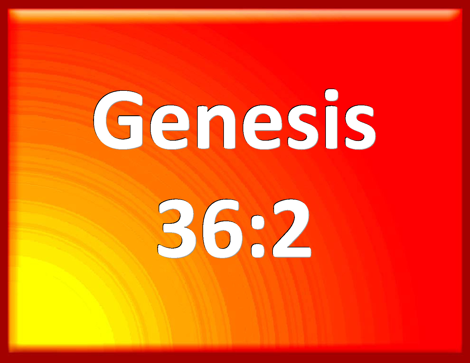 Bible Verse Slide Genesis 36:2 Esau took his wives of the daughters of Canaan; Adah the daughter of Elon the Hittite, and Aholibamah the daughter of Anah the daughter of Zibeon the Hivite; KJV: Esau took his wives of the daughters of Canaan; Adah the daughter of Elon the Hittite, and Aholibamah the daughter of Anah the daughter of Zibeon the Hivite; DRB: Esau took wives of the daughters of Chanaan: Ada the daughter of Elon the Hethite, and Oolibama the daughter of Ana, the daughter of Sebeon the Hevite: DBT: Esau took his wives of the daughters of Canaan: Adah the daughter of Elon the Hittite, and Oholibamah the daughter of Anah, daughter of Zibeon the Hivite, ERV: Esau took his wives of the daughters of Canaan; Adah the daughter of Elon the Hittite, and Oholibamah the daughter of Anah, the daughter of Zibeon the Hivite; WBT: Esau took his wives of the daughters of Canaan; Adah the daughter of Elon the Hittite, and Aholibamah the daughter of Anah the daughter of Zibeon the Hivite; WEB: Esau took his wives from the daughters of Canaan: Adah the daughter of Elon, the Hittite; and Oholibamah the daughter of Anah, the daughter of Zibeon, the Hivite; YLT: Esau hath taken his wives from the daughters of Canaan: Adah daughter of Elon the Hittite, and Aholibamah daughter of Anah, daughter of Zibeon the Hivite,Links Genesis 36:2 NIV • Genesis 36:2 NLT • Genesis 36:2 ESV • Genesis 36:2 NASB • Genesis 36:2 KJV • Genesis 36:2 Interlinear • Genesis 36:2 Commentaries • Genesis 36:2 Parallel Texts • Genesis 36:2 Bible Apps • Genesis 36:2 Parallel • Bible Hub |