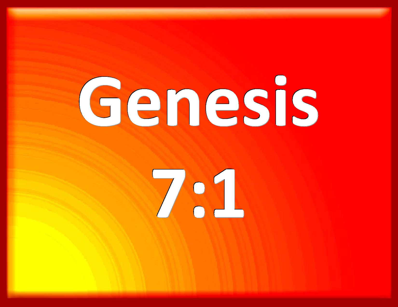Bible Verse Slide Genesis 7:1 And the LORD said to Noah, Come you and all your house into the ark; for you have I seen righteous before me in this generation. KJV: And the LORD said unto Noah, Come thou and all thy house into the ark; for thee have I seen righteous before me in this generation. DRB: And the Lord said to him: Go in thou and all thy house into the ark: for thee I have seen just before me in this generation. DBT: And Jehovah said to Noah, Go into the ark, thou and all thy house; for thee have I seen righteous before me in this generation. ERV: And the LORD said unto Noah, Come thou and all thy house into the ark; for thee have I seen righteous before me in this generation. WBT: And the LORD said to Noah, Come thou and all thy house into the ark: for thee have I seen righteous before me in this generation. WEB: Yahweh said to Noah, "Come with all of your household into the ship, for I have seen your righteousness before me in this generation. YLT: And Jehovah saith to Noah, 'Come in, thou and all thy house, unto the ark, for thee I have seen righteous before Me in this generation;Links Genesis 7:1 NIV • Genesis 7:1 NLT • Genesis 7:1 ESV • Genesis 7:1 NASB • Genesis 7:1 KJV • Genesis 7:1 Interlinear • Genesis 7:1 Commentaries • Genesis 7:1 Parallel Texts • Genesis 7:1 Bible Apps • Genesis 7:1 Parallel • Bible Hub |