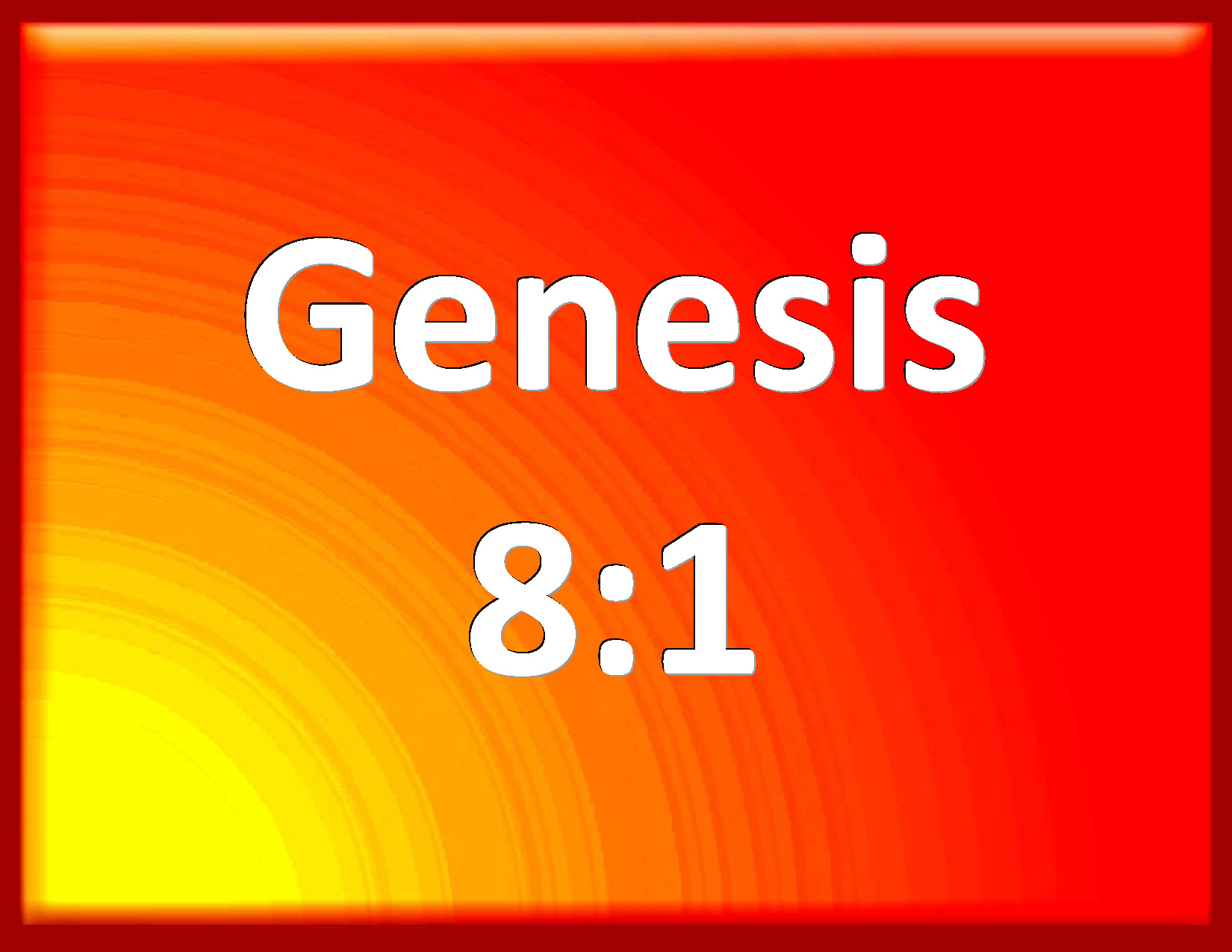 Bible Verse Slide Genesis 8:1 And God remembered Noah, and every living thing, and all the cattle that was with him in the ark: and God made a wind to pass over the earth, and the waters assuaged; KJV: And God remembered Noah, and every living thing, and all the cattle that was with him in the ark: and God made a wind to pass over the earth, and the waters asswaged; DRB: And God remembered Noe, and all the living creatures, and all the cattle which were with him in the ark, and brought a wind upon the earth, and the waters were abated. DBT: And God remembered Noah, and all the animals, and all the cattle that were with him in the ark; and God made a wind to pass over the earth, and the waters subsided. ERV: And God remembered Noah, and every living thing, and all the cattle that were with him in the ark: and God made a wind to pass over the earth, and the waters assuaged; WBT: And God remembered Noah, and every living animal, and all the cattle that were with him in the ark: and God made a wind to pass over the earth, and the waters were checked. WEB: God remembered Noah, all the animals, and all the livestock that were with him in the ship; and God made a wind to pass over the earth. The waters subsided. YLT: And God remembereth Noah, and every living thing, and all the cattle which are with him in the ark, and God causeth a wind to pass over the earth, and the waters subside,Links Genesis 8:1 NIV • Genesis 8:1 NLT • Genesis 8:1 ESV • Genesis 8:1 NASB • Genesis 8:1 KJV • Genesis 8:1 Interlinear • Genesis 8:1 Commentaries • Genesis 8:1 Parallel Texts • Genesis 8:1 Bible Apps • Genesis 8:1 Parallel • Bible Hub |