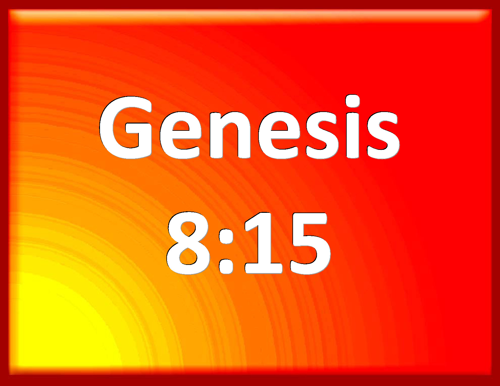 Bible Verse Slide Genesis 8:15 And God spoke to Noah, saying, KJV: And God spake unto Noah, saying, DRB: And God spoke to Noe, saying: DBT: And God spoke to Noah, saying, ERV: And God spake unto Noah, saying, WBT: And God spoke to Noah, saying, WEB: God spoke to Noah, saying, YLT: And God speaketh unto Noah, saying, 'Go out from the ark, thou, and thy wife, and thy sons, and thy sons' wives with thee;Links Genesis 8:15 NIV • Genesis 8:15 NLT • Genesis 8:15 ESV • Genesis 8:15 NASB • Genesis 8:15 KJV • Genesis 8:15 Interlinear • Genesis 8:15 Commentaries • Genesis 8:15 Parallel Texts • Genesis 8:15 Bible Apps • Genesis 8:15 Parallel • Bible Hub |