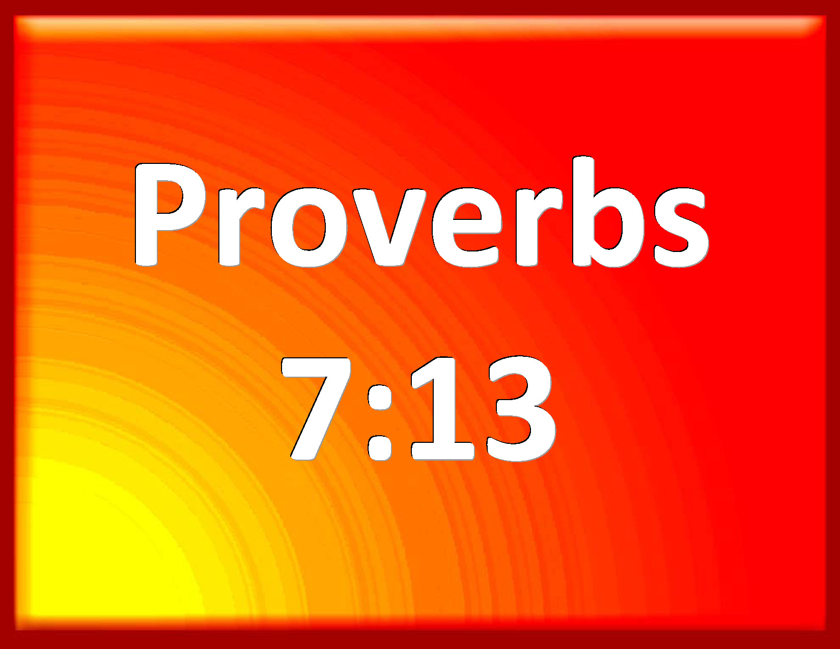 Bible Verse Slide Proverbs 7:13 So she caught him, and kissed him, and with an impudent face said to him, KJV: So she caught him, and kissed him, and with an impudent face said unto him, DRB: And catching the young man, she kisseth him, and with an impudent face, flattereth, saying: DBT: And she caught him and kissed him, and with an impudent face said unto him, ERV: So she caught him, and kissed him, and with an impudent face she said unto him: WBT: So she caught him, and kissed him, and with an impudent face said to him, WEB: So she caught him, and kissed him. With an impudent face she said to him: YLT: And she laid hold on him, and kissed him, She hath hardened her face, and saith to him,Links Proverbs 7:13 NIV • Proverbs 7:13 NLT • Proverbs 7:13 ESV • Proverbs 7:13 NASB • Proverbs 7:13 KJV • Proverbs 7:13 Interlinear • Proverbs 7:13 Commentaries • Proverbs 7:13 Parallel Texts • Proverbs 7:13 Bible Apps • Proverbs 7:13 Parallel • Bible Hub |