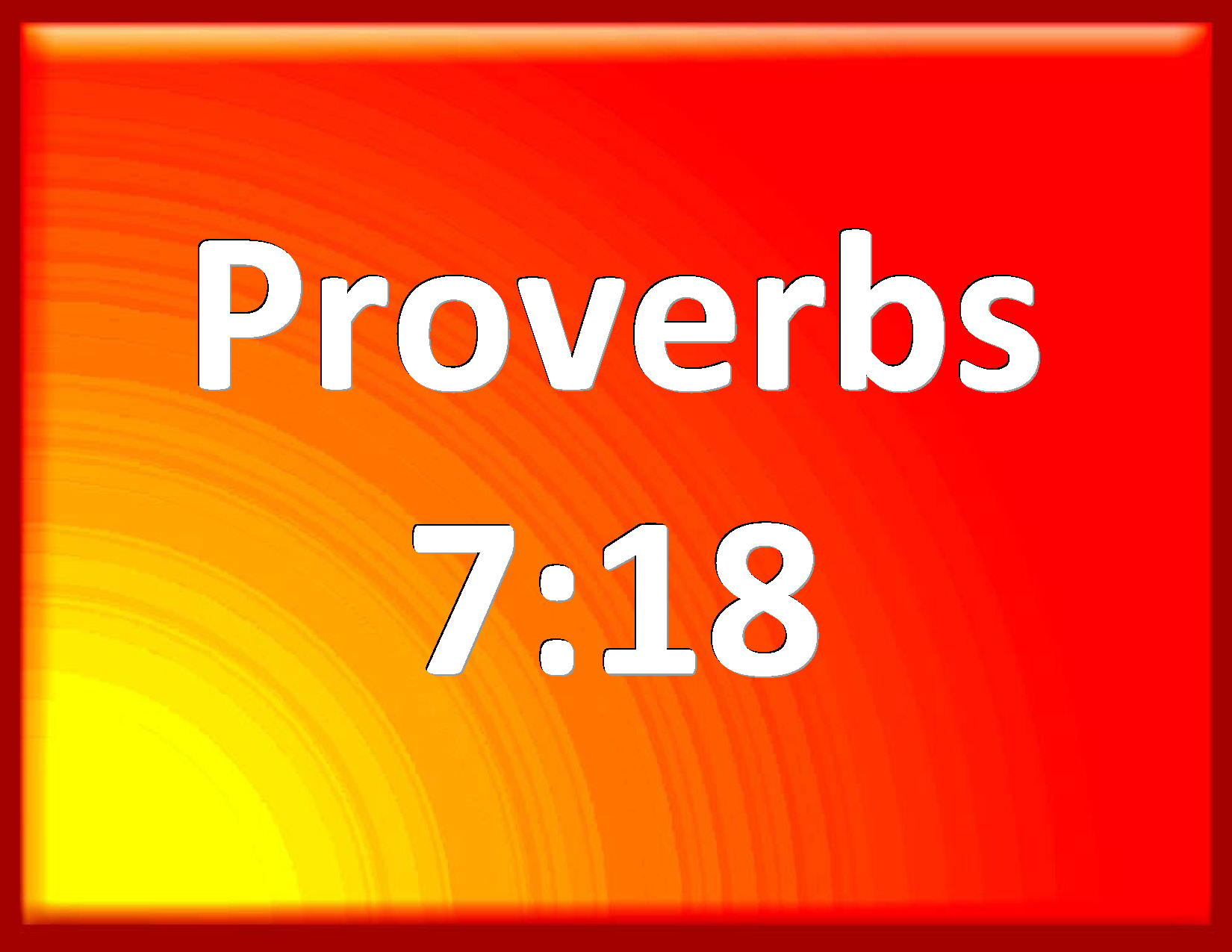 Bible Verse Slide Proverbs 7:18 Come, let us take our fill of love until the morning: let us solace ourselves with loves. KJV: Come, let us take our fill of love until the morning: let us solace ourselves with loves. DRB: Come, let us be inebriated with the breasts, and let us enjoy the desired embraces, till the day appear. DBT: Come, let us revel in love until the morning, let us delight ourselves with loves. ERV: Come, let us take our fill of love until the morning; let us solace ourselves with loves. WBT: Come, let us take our fill of love until the morning: let us solace ourselves with loves. WEB: Come, let's take our fill of loving until the morning. Let's solace ourselves with loving. YLT: Come, we are filled with loves till the morning, We delight ourselves in loves.Links Proverbs 7:18 NIV • Proverbs 7:18 NLT • Proverbs 7:18 ESV • Proverbs 7:18 NASB • Proverbs 7:18 KJV • Proverbs 7:18 Interlinear • Proverbs 7:18 Commentaries • Proverbs 7:18 Parallel Texts • Proverbs 7:18 Bible Apps • Proverbs 7:18 Parallel • Bible Hub |