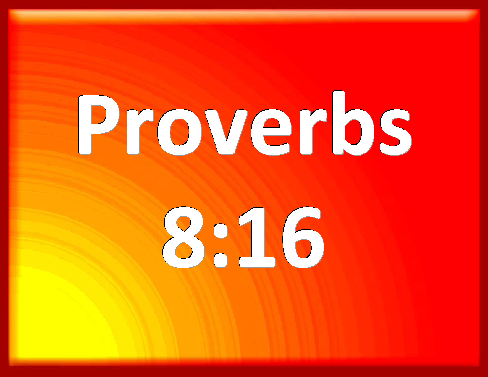 Bible Verse Slide Proverbs 8:16 By me princes rule, and nobles, even all the judges of the earth. KJV: By me princes rule, and nobles, even all the judges of the earth. DRB: By me princes rule, and the mighty decree justice. DBT: by me princes rule, and nobles, all the judges of the earth. ERV: By me princes rule, and nobles, even all the judges of the earth. WBT: By me princes rule, and nobles, even all the judges of the earth. WEB: By me princes rule; nobles, and all the righteous rulers of the earth. YLT: By me do chiefs rule, and nobles, All judges of the earth.Links Proverbs 8:16 NIV • Proverbs 8:16 NLT • Proverbs 8:16 ESV • Proverbs 8:16 NASB • Proverbs 8:16 KJV • Proverbs 8:16 Interlinear • Proverbs 8:16 Commentaries • Proverbs 8:16 Parallel Texts • Proverbs 8:16 Bible Apps • Proverbs 8:16 Parallel • Bible Hub |