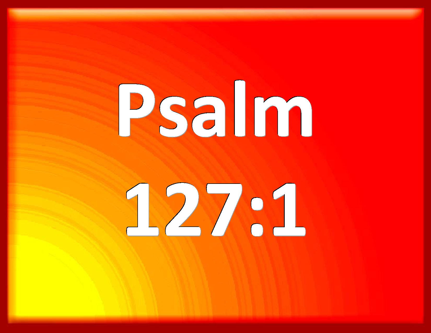Bible Verse Slide Psalm 127:1 Except the LORD build the house, they labor in vain that build it: except the LORD keep the city, the watchman wakes but in vain. KJV: {A Song of degrees for Solomon.} Except the LORD build the house, they labour in vain that build it: except the LORD keep the city, the watchman waketh but in vain. DRB: Unless the Lord build the house, they labour in vain that build it. Unless the Lord keep the city, he watcheth in vain that keepeth it. DBT: {A Song of degrees. Of Solomon.} Unless Jehovah build the house, in vain do its builders labour in it; unless Jehovah keep the city, the keeper watcheth in vain: ERV: A Song of Ascents; of Solomon. Except the LORD build the house, they labour in vain that build it: except the LORD keep the city, the watchman waketh but in vain. WBT: A Song of degrees for Solomon. Except the LORD shall build the house, they labor in vain that build it: except the LORD shall keep the city, the watchman waketh in vain. WEB: Unless Yahweh builds the house, they labor in vain who build it. Unless Yahweh watches over the city, the watchman guards it in vain. YLT: A Song of the Ascents, by Solomon. If Jehovah doth not build the house, In vain have its builders laboured at it, If Jehovah doth not watch a city, In vain hath a watchman waked.Links Psalm 127:1 NIV • Psalm 127:1 NLT • Psalm 127:1 ESV • Psalm 127:1 NASB • Psalm 127:1 KJV • Psalm 127:1 Interlinear • Psalm 127:1 Commentaries • Psalm 127:1 Parallel Texts • Psalm 127:1 Bible Apps • Psalm 127:1 Parallel • Bible Hub |