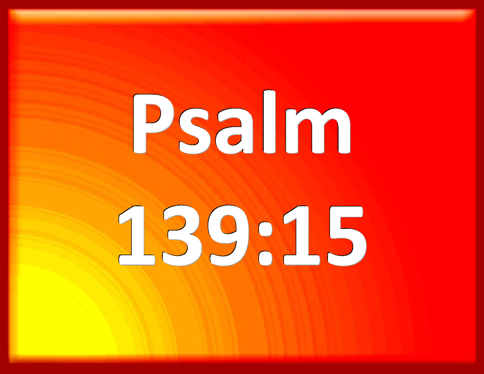 Bible Verse Slide Psalm 139:15 My substance was not hid from you, when I was made in secret, and curiously worked in the lowest parts of the earth. KJV: My substance was not hid from thee, when I was made in secret, and curiously wrought in the lowest parts of the earth. DRB: My bone is not hidden from thee, which thou hast made in secret: and my substance in the lower parts of the earth. DBT: My bones were not hidden from thee when I was made in secret, curiously wrought in the lower parts of the earth. ERV: My frame was not hidden from thee, when I was made in secret, and curiously wrought in the lowest parts of the earth. WBT: My substance was not hid from thee when I was made in secret, and curiously formed in the lowest parts of the earth. WEB: My frame wasn't hidden from you, when I was made in secret, woven together in the depths of the earth. YLT: My substance was not hid from Thee, When I was made in secret, Curiously wrought in the lower part of earth.Links Psalm 139:15 NIV • Psalm 139:15 NLT • Psalm 139:15 ESV • Psalm 139:15 NASB • Psalm 139:15 KJV • Psalm 139:15 Interlinear • Psalm 139:15 Commentaries • Psalm 139:15 Parallel Texts • Psalm 139:15 Bible Apps • Psalm 139:15 Parallel • Bible Hub |