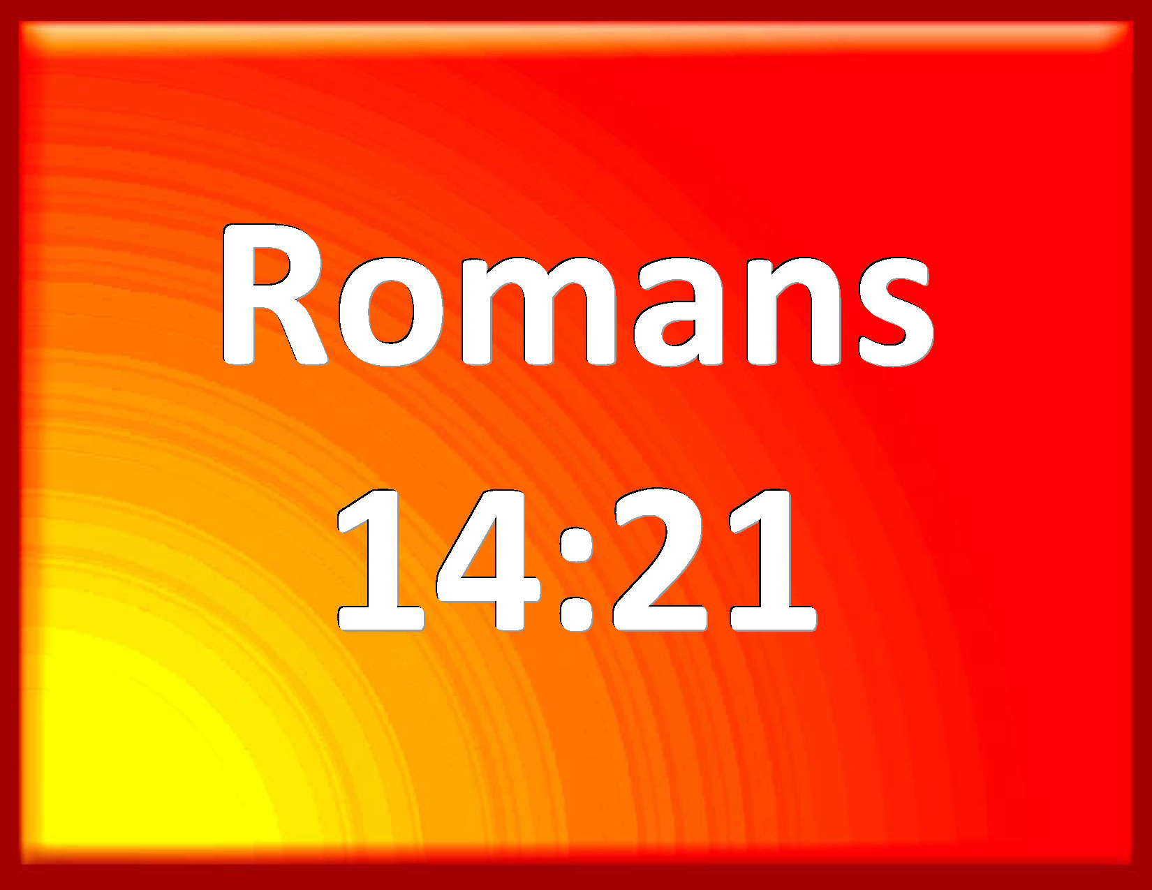 Bible Verse Slide Romans 14:21 It is good neither to eat flesh, nor to drink wine, nor any thing whereby your brother stumbles, or is offended, or is made weak. KJV: It is good neither to eat flesh, nor to drink wine, nor any thing whereby thy brother stumbleth, or is offended, or is made weak. DRB: It is good not to eat flesh, and not to drink wine, nor any thing whereby thy brother is offended, or scandalized, or made weak. DBT: It is right not to eat meat, nor drink wine, nor do anything in which thy brother stumbles, or is offended, or is weak. ERV: It is good not to eat flesh, nor to drink wine, nor to do anything whereby thy brother stumbleth. WBT: It is good neither to eat flesh, nor to drink wine, nor any thing by which thy brother stumbleth, or is offended, or is made weak. WEB: It is good to not eat meat, drink wine, nor do anything by which your brother stumbles, is offended, or is made weak. YLT: Right it is not to eat flesh, nor to drink wine, nor to do anything in which thy brother doth stumble, or is made to fall, or is weak.Links Romans 14:21 NIV • Romans 14:21 NLT • Romans 14:21 ESV • Romans 14:21 NASB • Romans 14:21 KJV • Romans 14:21 Interlinear • Romans 14:21 Commentaries • Romans 14:21 Parallel Texts • Romans 14:21 Bible Apps • Romans 14:21 Parallel • Bible Hub |