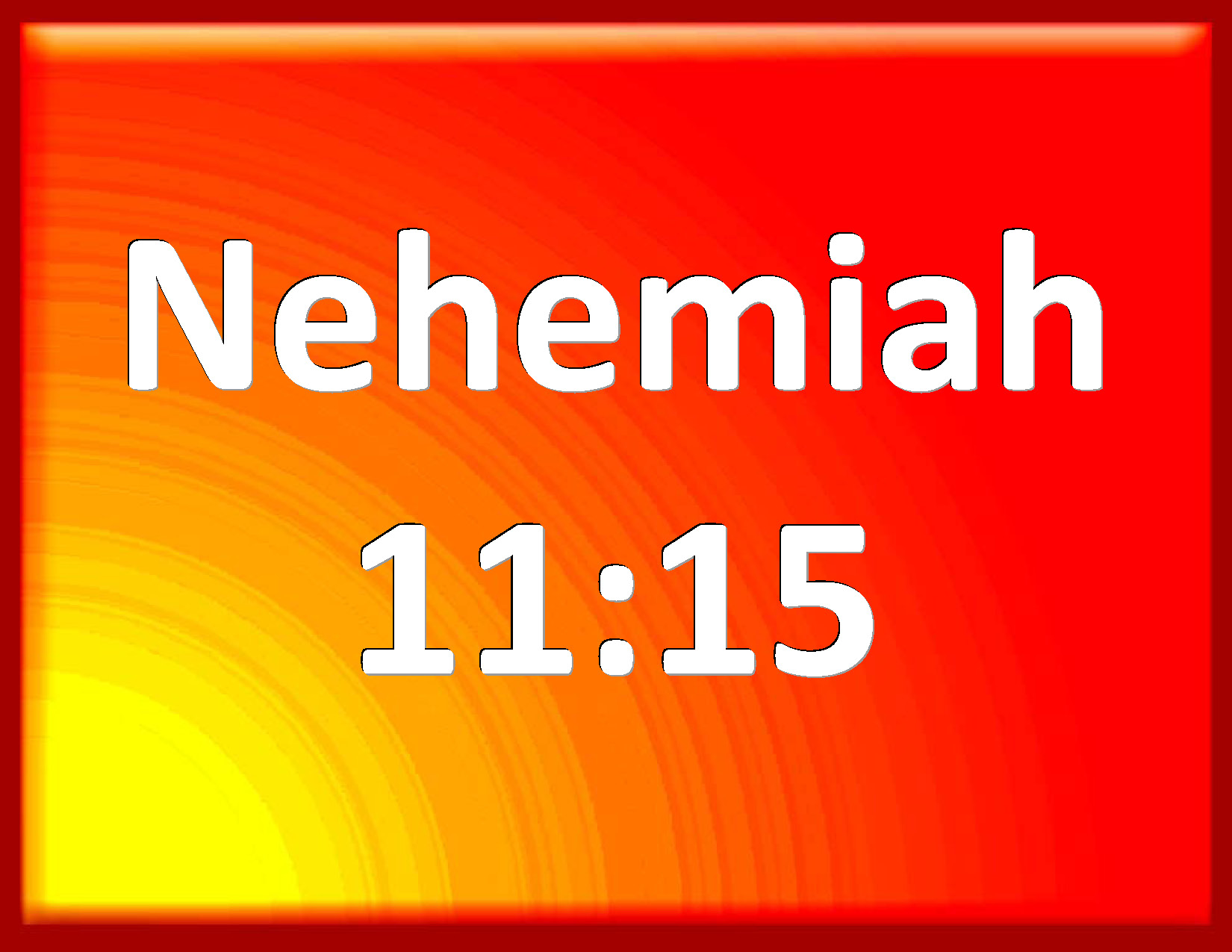 Bible Verse Slide Nehemiah 11:15 Also of the Levites: Shemaiah the son of Hashub, the son of Azrikam, the son of Hashabiah, the son of Bunni; KJV: Also of the Levites: Shemaiah the son of Hashub, the son of Azrikam, the son of Hashabiah, the son of Bunni; DRB: And of the Levites Semeia the son of Hasub, the son of Azaricam, the son of Hasabia, the son of Boni, DBT: And of the Levites: Shemaiah the son of Hasshub, the son of Azrikam, the son of Hashabiah, the son of Bunni; ERV: And of the Levites: Shemaiah the son of Hasshub, the son of Azrikam, the son of Hashabiah, the son of Bunni; WBT: Also of the Levites: Shemaiah the son of Hashub, the son of Azrikam, the son of Hashabiah, the son of Bunni; WEB: Of the Levites: Shemaiah the son of Hasshub, the son of Azrikam, the son of Hashabiah, the son of Bunni; YLT: And of the Levites: Shemaiah son of Hashub, son of Azrikam, son of Hashabiah, son of Bunni,Links Nehemiah 11:15 NIV • Nehemiah 11:15 NLT • Nehemiah 11:15 ESV • Nehemiah 11:15 NASB • Nehemiah 11:15 KJV • Nehemiah 11:15 Interlinear • Nehemiah 11:15 Commentaries • Nehemiah 11:15 Parallel Texts • Nehemiah 11:15 Bible Apps • Nehemiah 11:15 Parallel • Bible Hub |