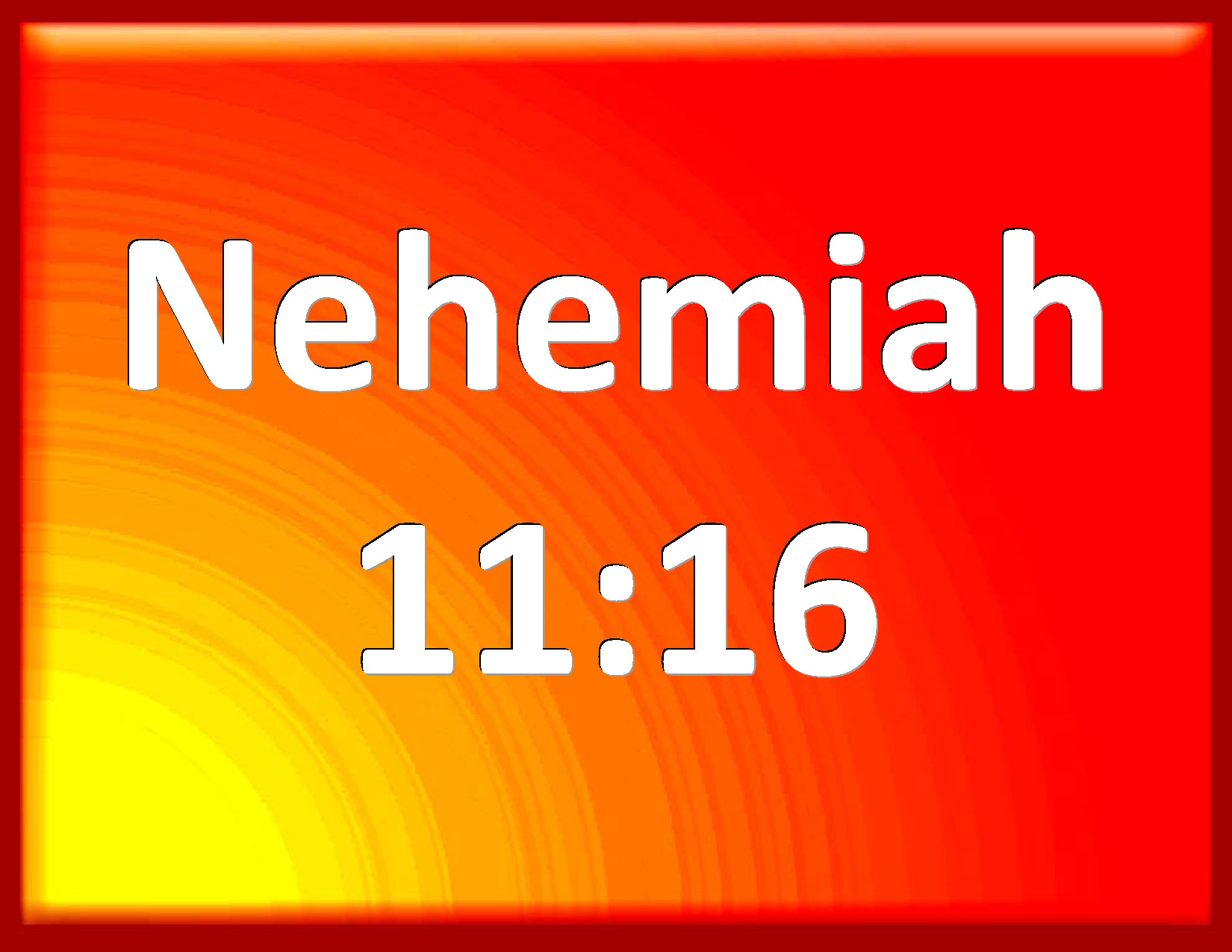 Bible Verse Slide Nehemiah 11:16 And Shabbethai and Jozabad, of the chief of the Levites, had the oversight of the outward business of the house of God. KJV: And Shabbethai and Jozabad, of the chief of the Levites, had the oversight of the outward business of the house of God. DRB: And Sabathai and Jozabed, who were over all the outward business of the house of Cod, of the princes of the Levites, DBT: and Shabbethai and Jozabad, of the chiefs of the Levites, who were over the outward work of the house of God; ERV: and Shabbethai and Jozabad, of the chiefs of the Levites, who had the oversight of the outward business of the house of God; WBT: And Shabbethai and Jozabad, of the chief of the Levites, had the oversight of the outward business of the house of God. WEB: and Shabbethai and Jozabad, of the chiefs of the Levites, who had the oversight of the outward business of the house of God; YLT: and Shabbethai, and Jozabad, are over the outward work of the house of God, of the heads of the Levites,Links Nehemiah 11:16 NIV • Nehemiah 11:16 NLT • Nehemiah 11:16 ESV • Nehemiah 11:16 NASB • Nehemiah 11:16 KJV • Nehemiah 11:16 Interlinear • Nehemiah 11:16 Commentaries • Nehemiah 11:16 Parallel Texts • Nehemiah 11:16 Bible Apps • Nehemiah 11:16 Parallel • Bible Hub |