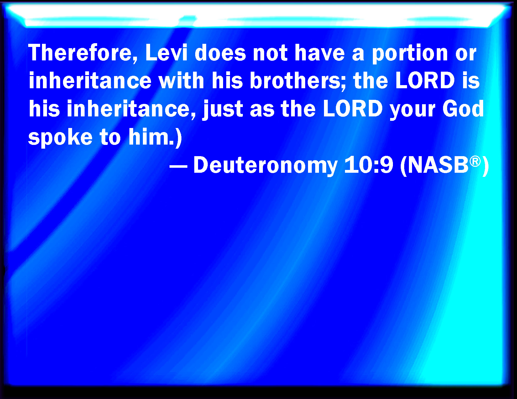 Deuteronomy 10:9 Why Levi has no part nor inheritance with his brothers; the LORD is his inheritance, according as the LORD your God promised him.